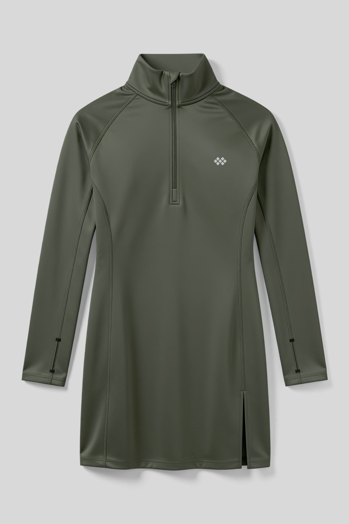 Haki Yarım Fermuarlı Dik Yaka Standart Kalıp Kadın Sporcu Tunik - 97309