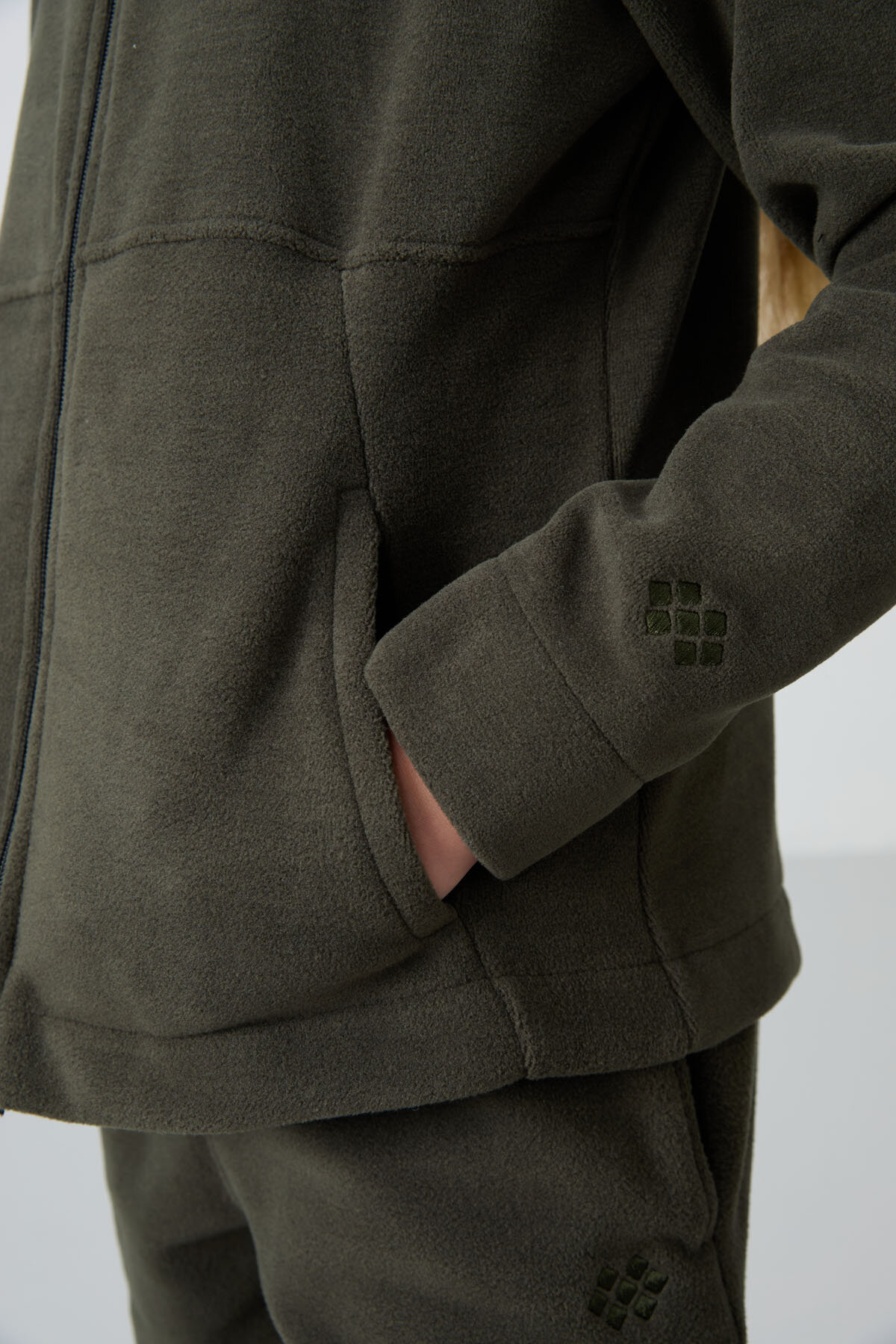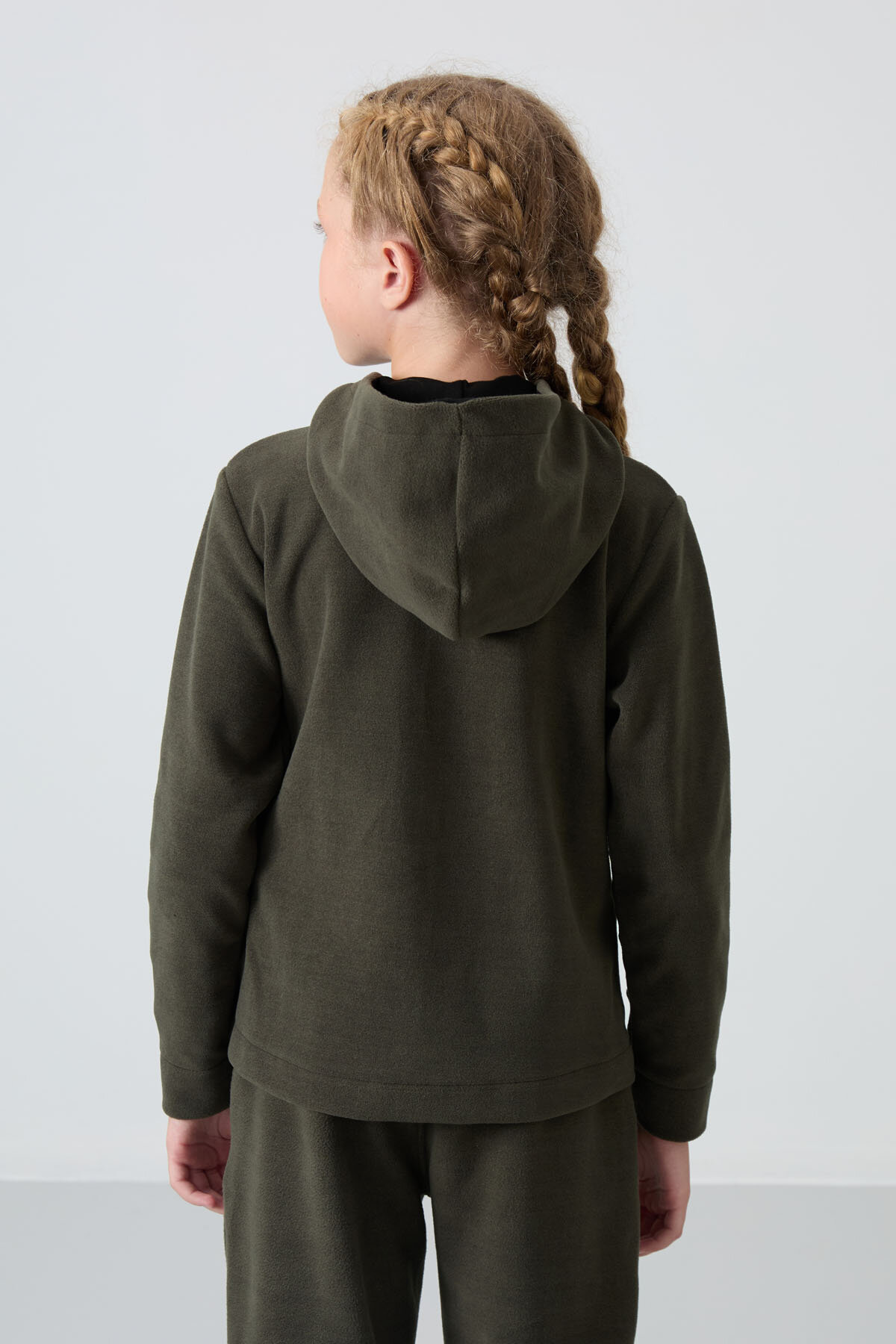 Haki Kalın Yumuşak Dokulu Standart Fit Nakışlı Polar Kız Çocuk Sweatshirt - 75152