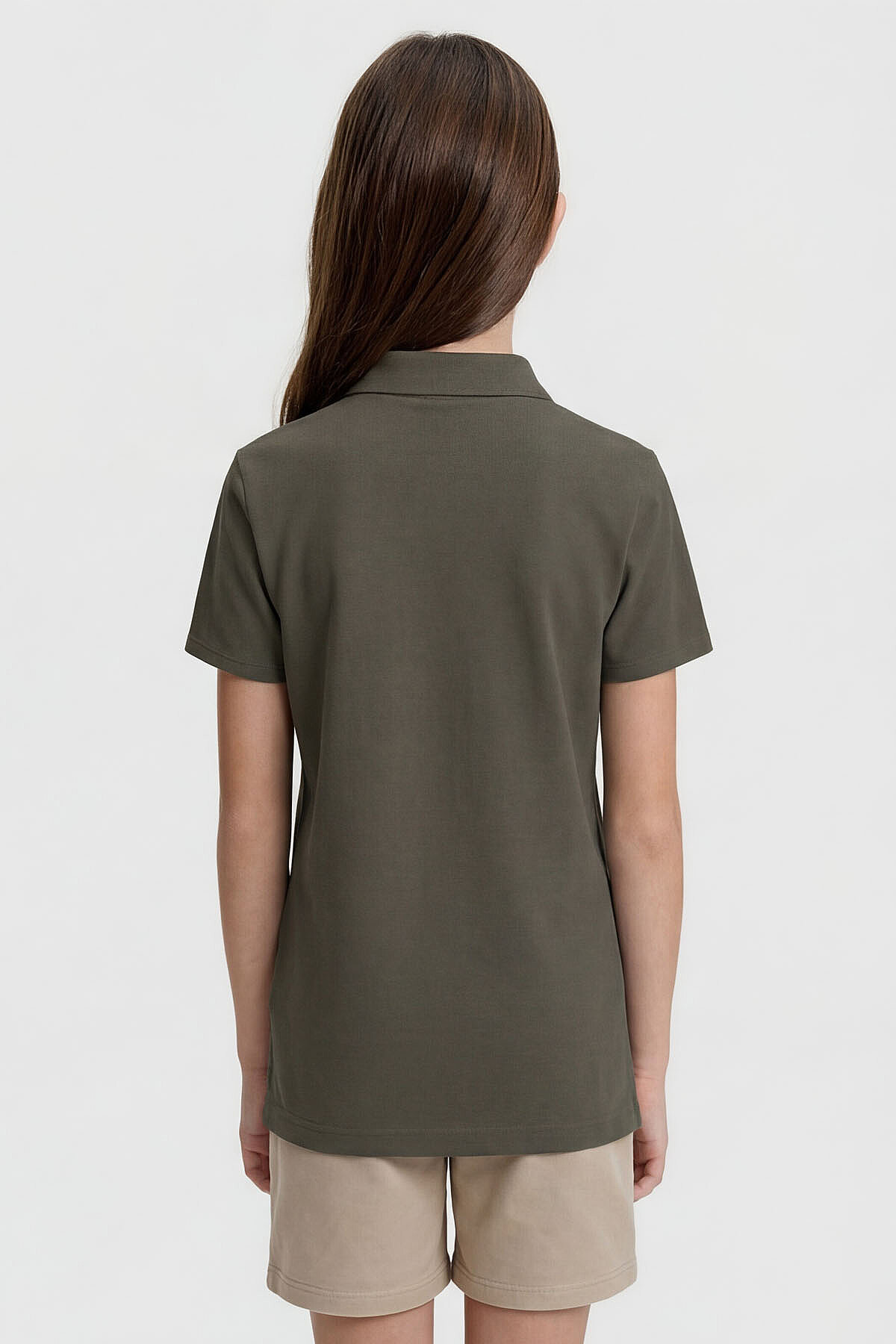 Haki Polo Yaka Standart Fit Basic Unisex Çocuk T-Shirt - 11330