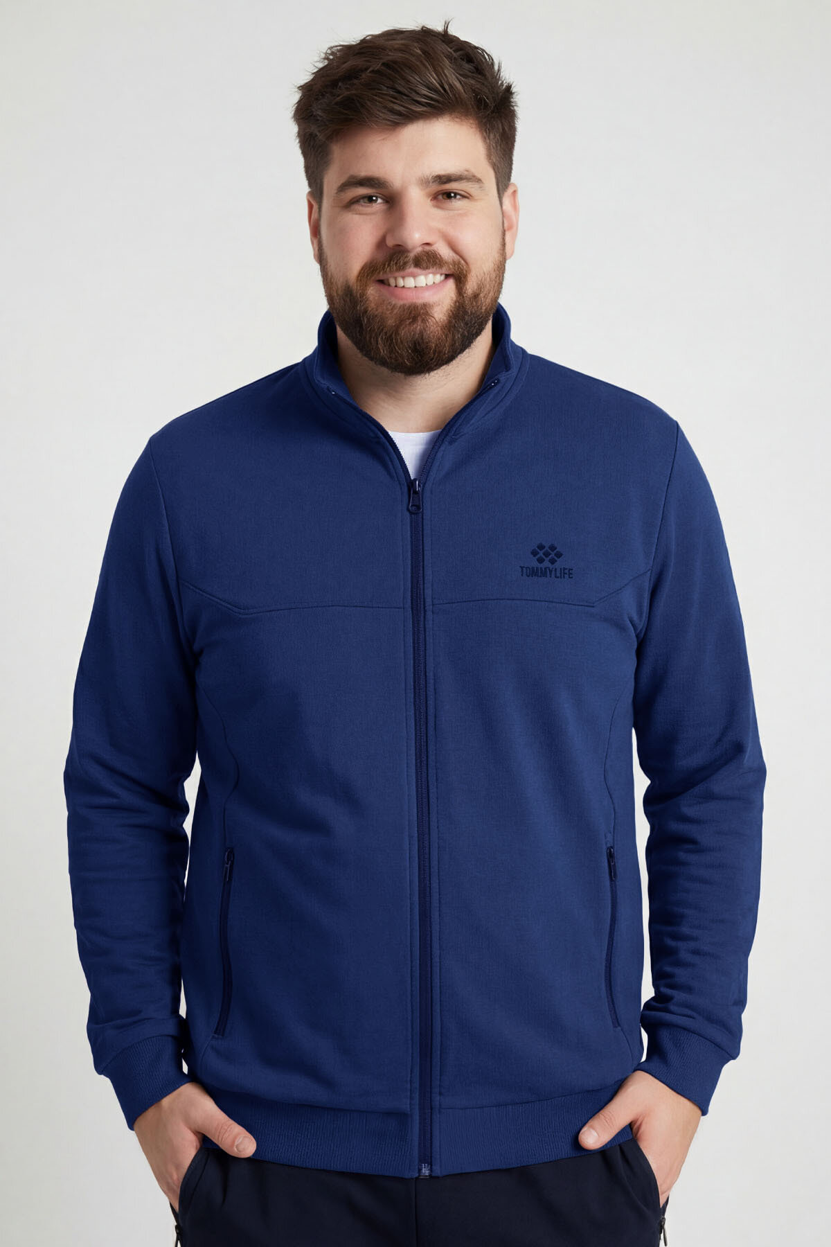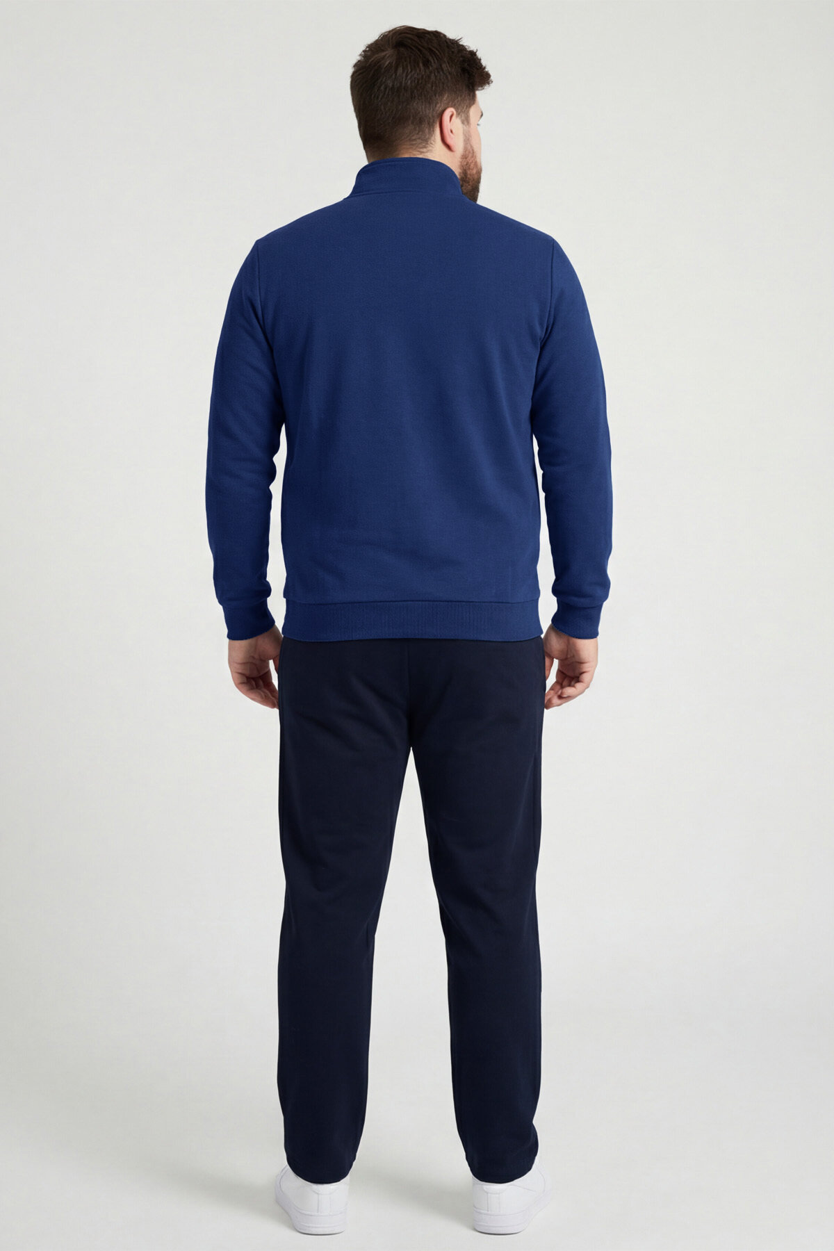 İndigo - Lacivert Dik Yaka Battal Büyük Beden Erkek Eşofman Takım - 85176
