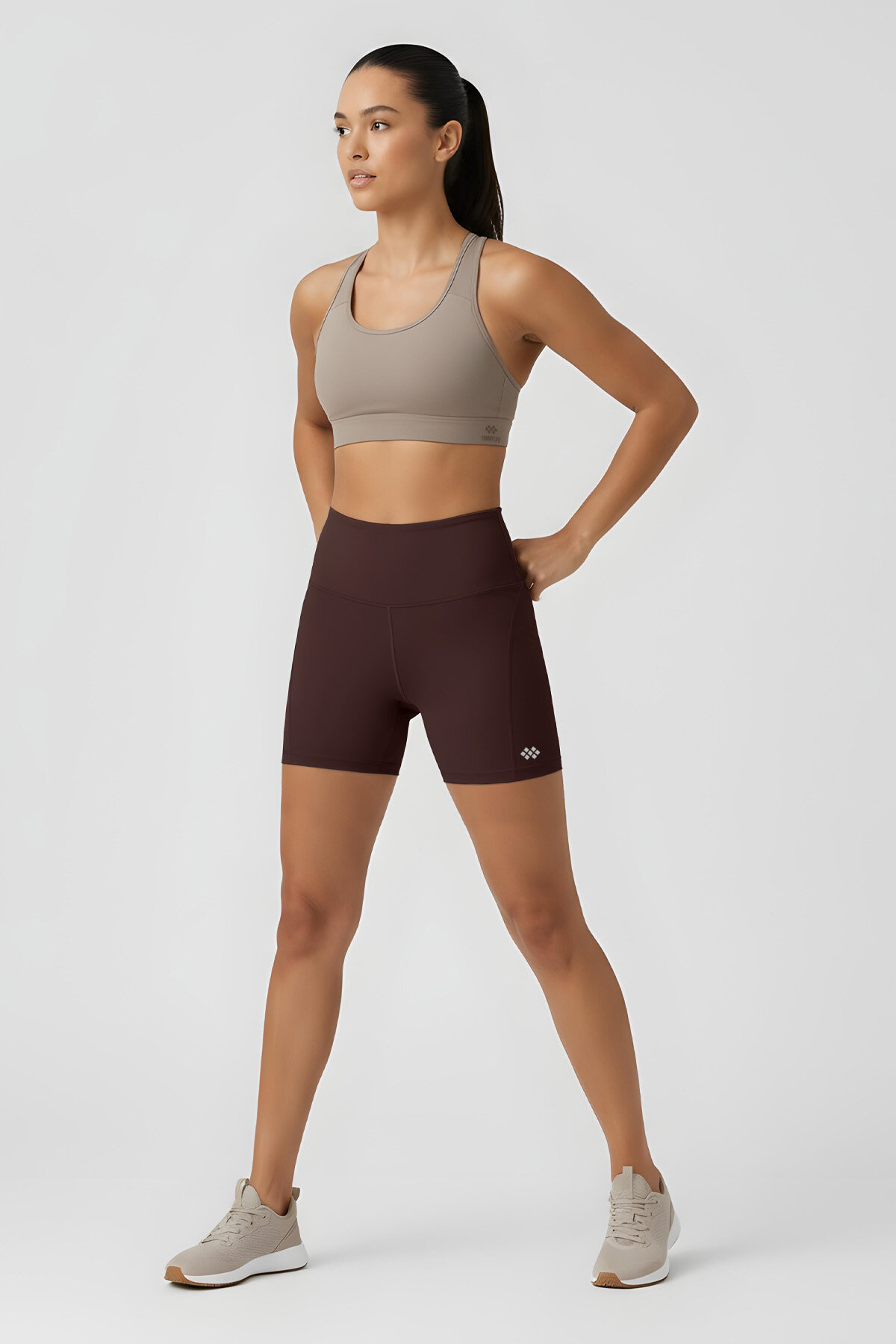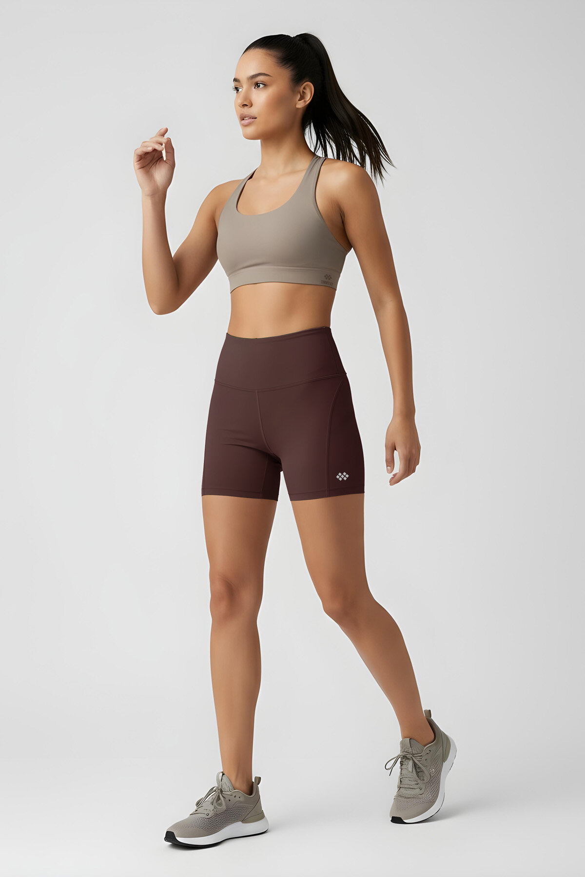 Kahverengi Kemer Detaylı Yüksek Bel Slim Fit Kısa Biker Kadın Tayt - 91017