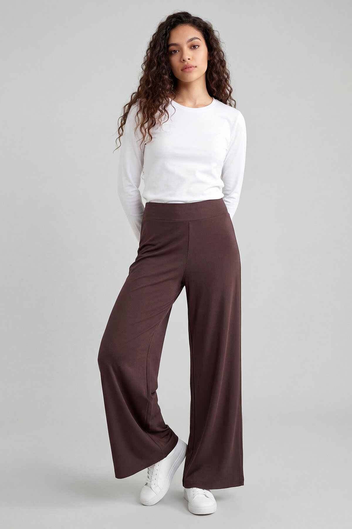 Kahverengi Comfort Fit Geniş Paça Korsajlı Palazzo Kadın Pantolon - 94681
