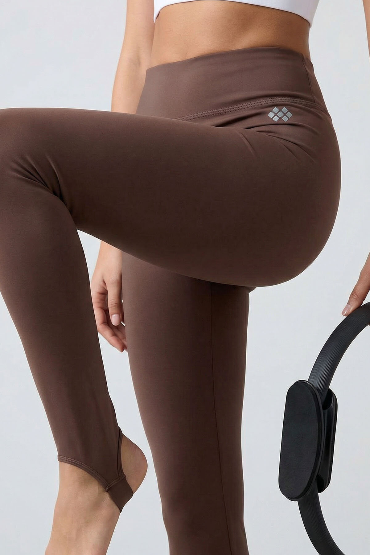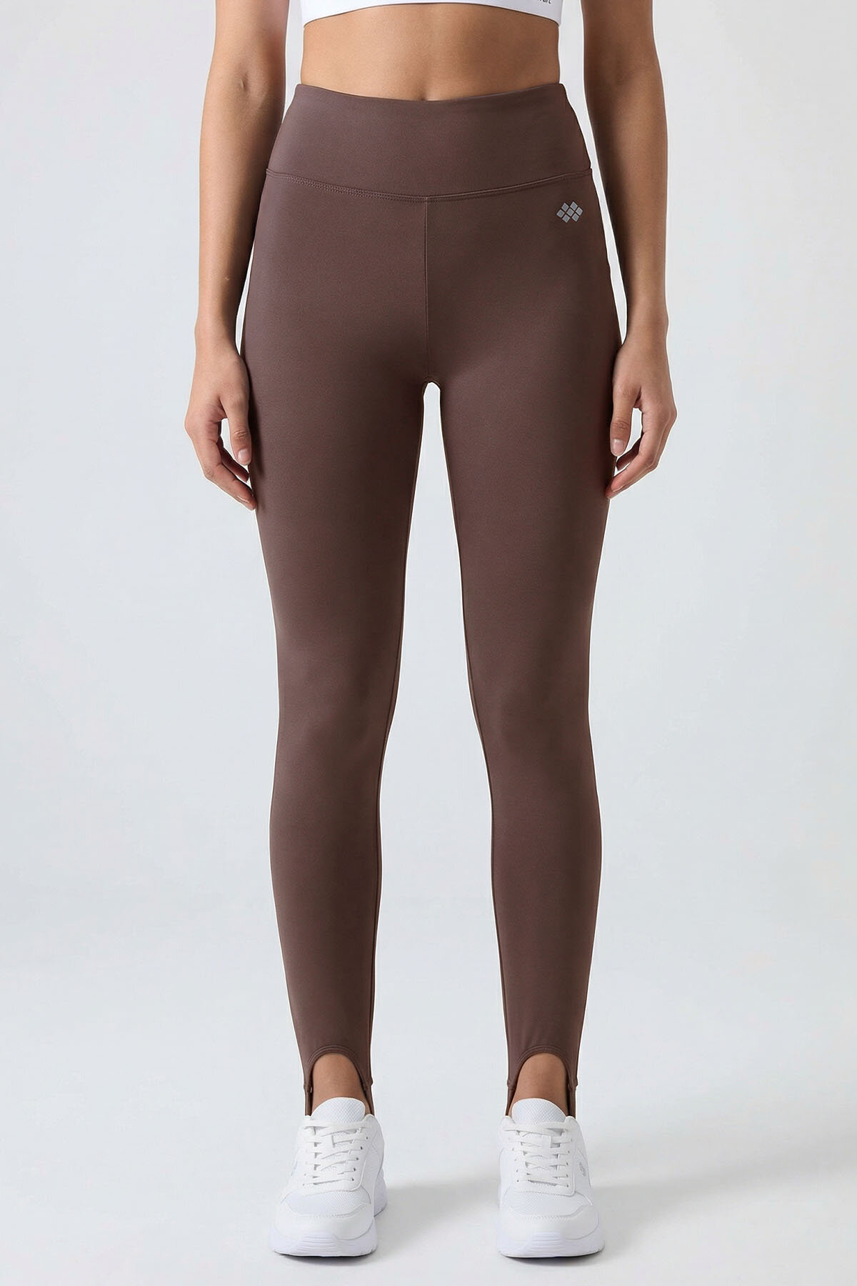 Kahverengi Standart Fit Esnek Spor Performans Kadın Topuklu Tayt - 94685