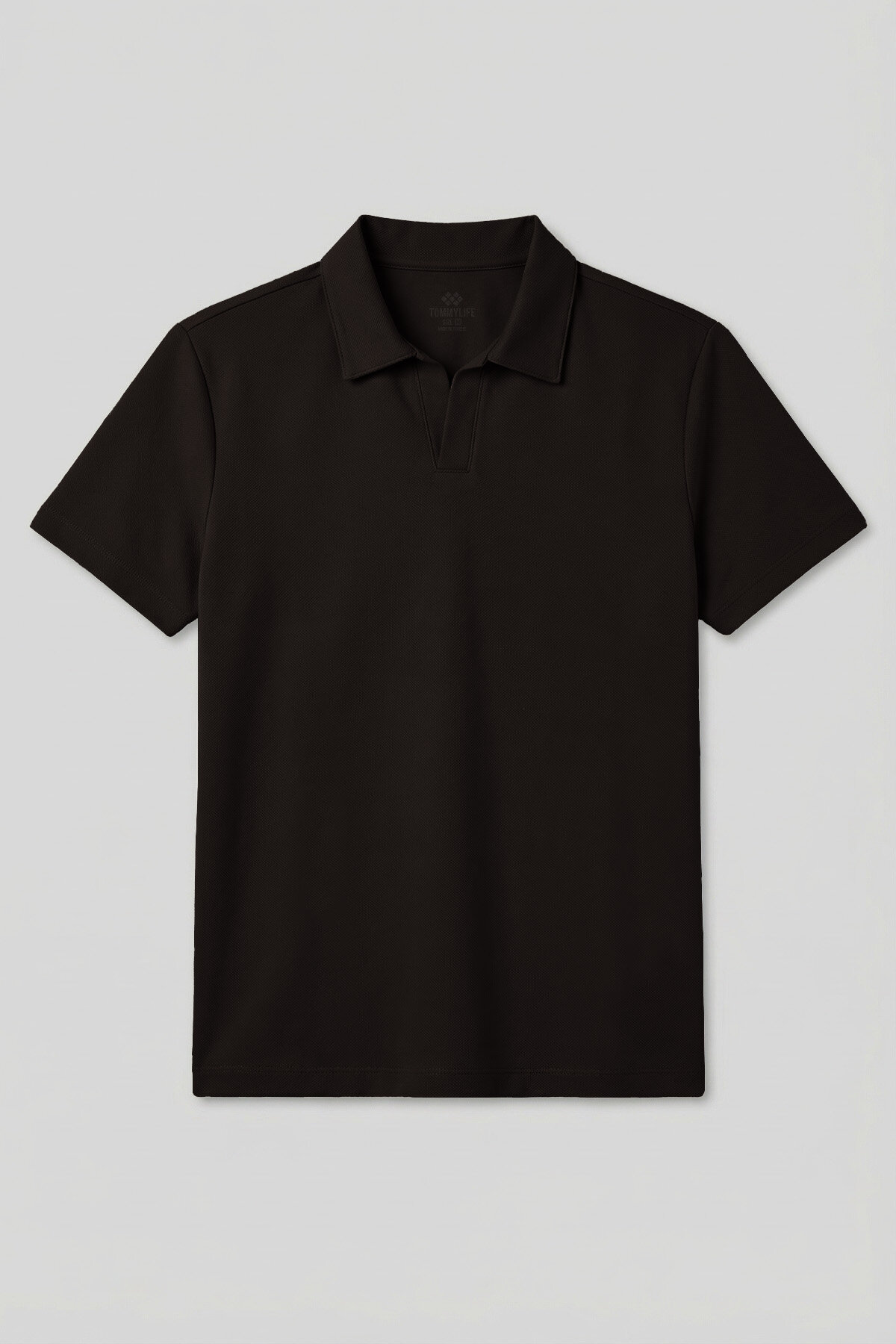Siyah Rahat Form Yumuşak Dokulu Polo Yaka Erkek T-Shirt - 88496