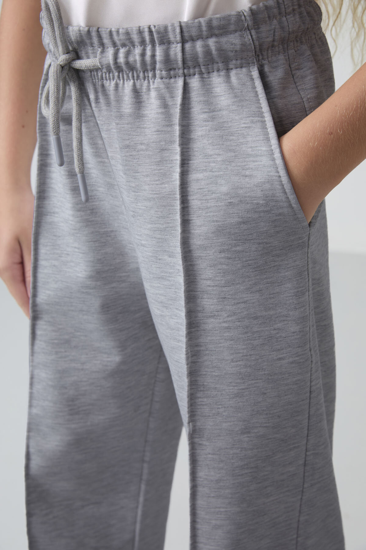 Kar Melanj Cepli Ön Dikiş Detaylı Geniş Paça Kız Çocuk Eşofman Altı -75144