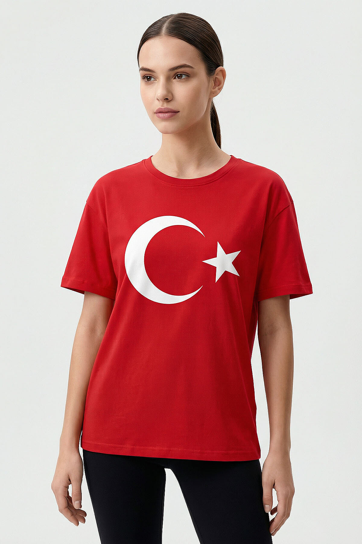 Kırmızı Ay Yıldız Baskılı Unisex T-Shirt - 88509