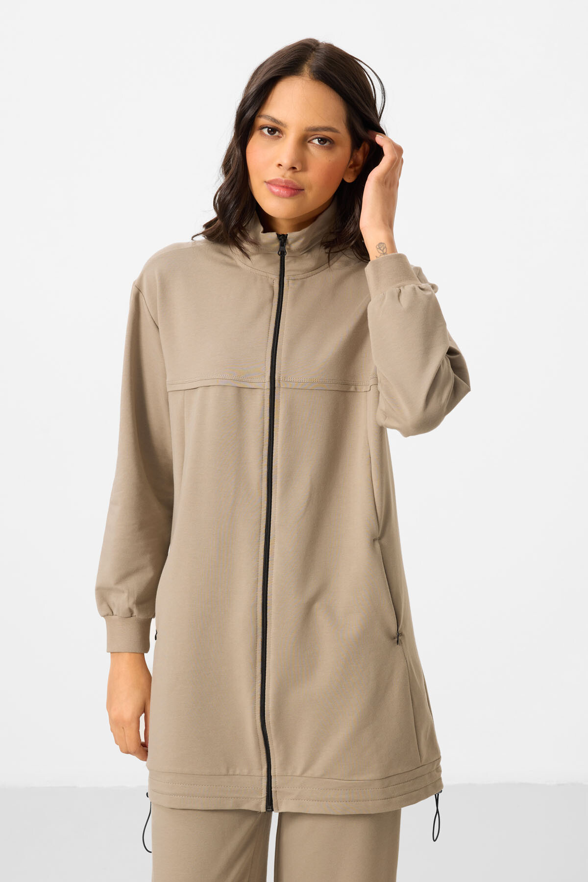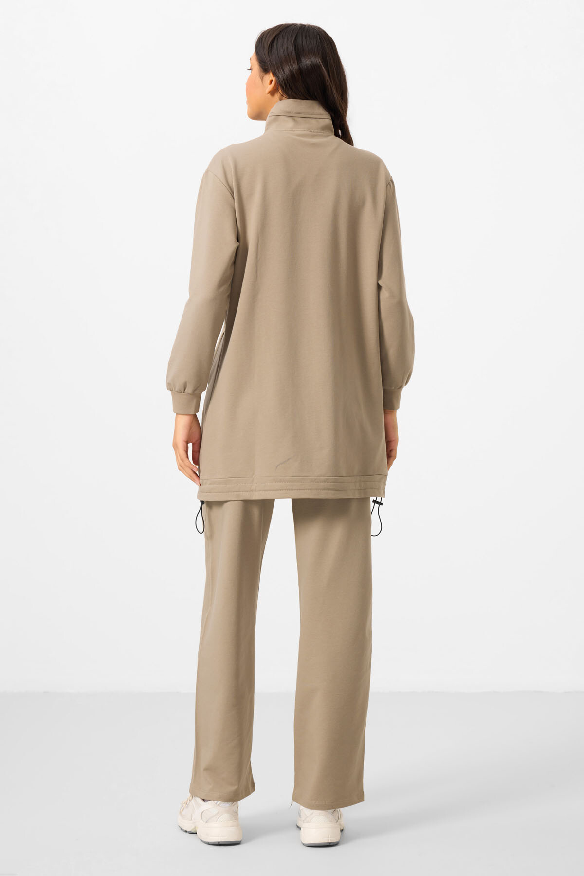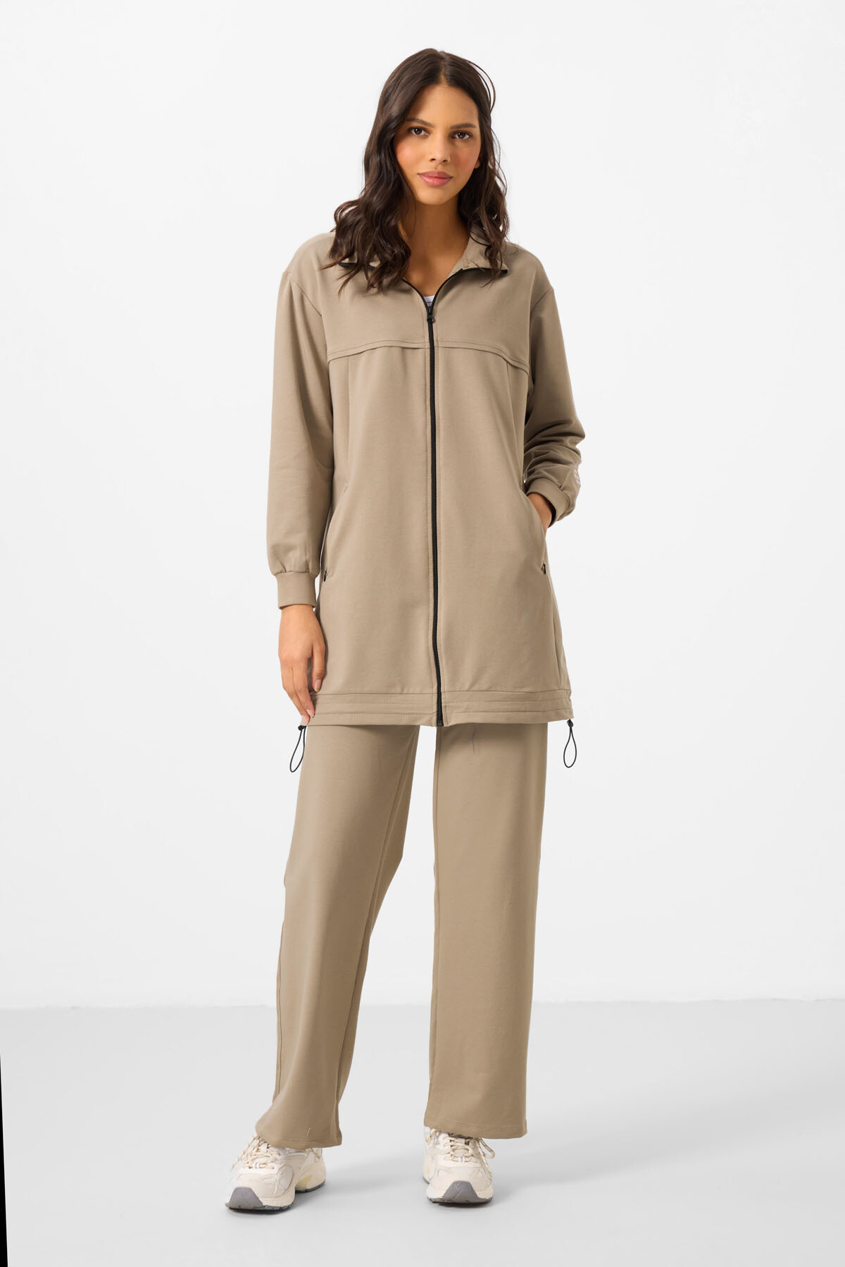 Günün her anına uyum sağlayan koyu bej eşofman takımı, minimal tasarımıyla öne çıkıyor. Yumuşak dokusu ve ferah kesimiyle konforunuzu zirveye taşırken, şehirli stilinize sade ama etkileyici bir dokunuş katıyor. Hem evde hem dışarıda stilinizden ödün vermeyin.