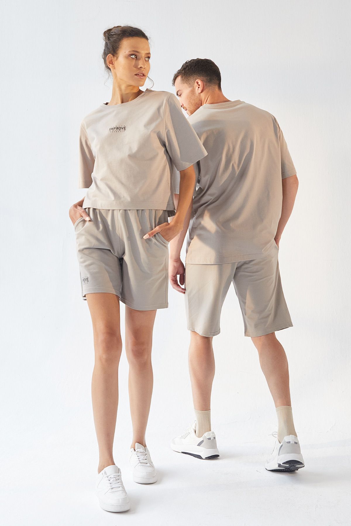 Ürün Kodu : 95292_421 - 85156_421Ürün Adı : Koyu Bej Küçük Yazı Baskılı O Yaka Oversize Bermuda Şort Takım Sevgili KombiniModelin Ölçüleri : Erkek - Boy : 1,85 Cm / Göğüs : 98 Cm / Bel : 80 Cm - M/38 / Kadın - Boy : 1.79 Cm / Göğüs : 86 Cm / Bel : 62 Cm / Kalça : 90 Cm - S/36Numune Bedeni : Erkek - M/38 Kadın - S/36Kumaş Bilgisi : %80 Pamuk %15 Polyester %5 ElastanMevsimi : YazÜrün Kalıp Bilgisi : OversizeÜrün Ölçüleri : Erkek - Alt: Yan Boy Kemer Dahil S Beden: 54 Cm / Bel: 35 Cm / Basen: 53,5 Cm - Üst: Omuzdan Boy: 72,5 Cm / Göğüs: 57 Cm / Kadın - Alt: Yan Boy Kemer Dahil S Beden: 43,5 Cm / Bel: 34 Cm / Basen: 52 CmPaket/Ürün İçeriği : Şort Takım