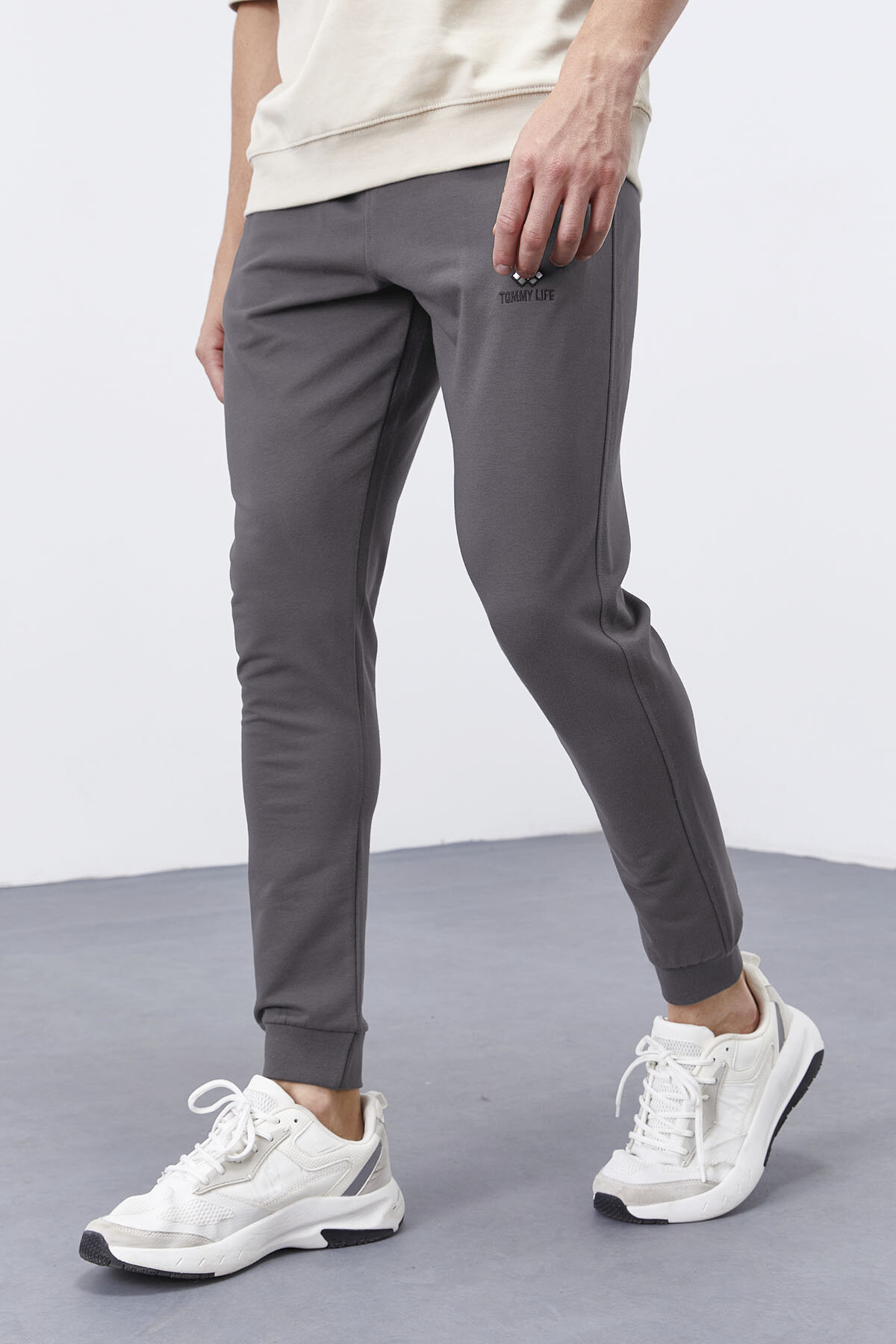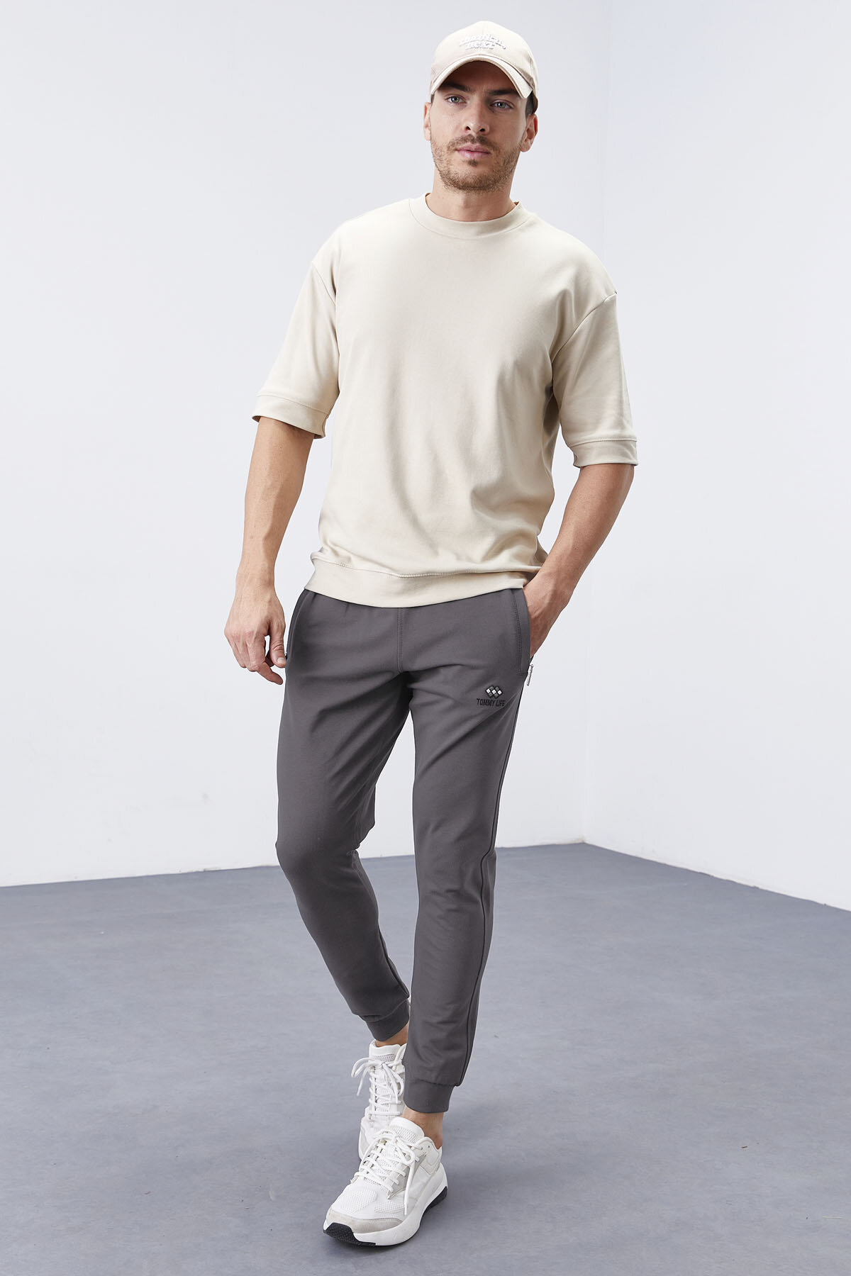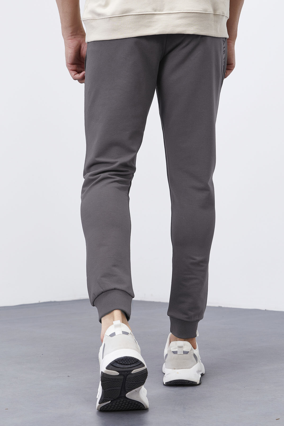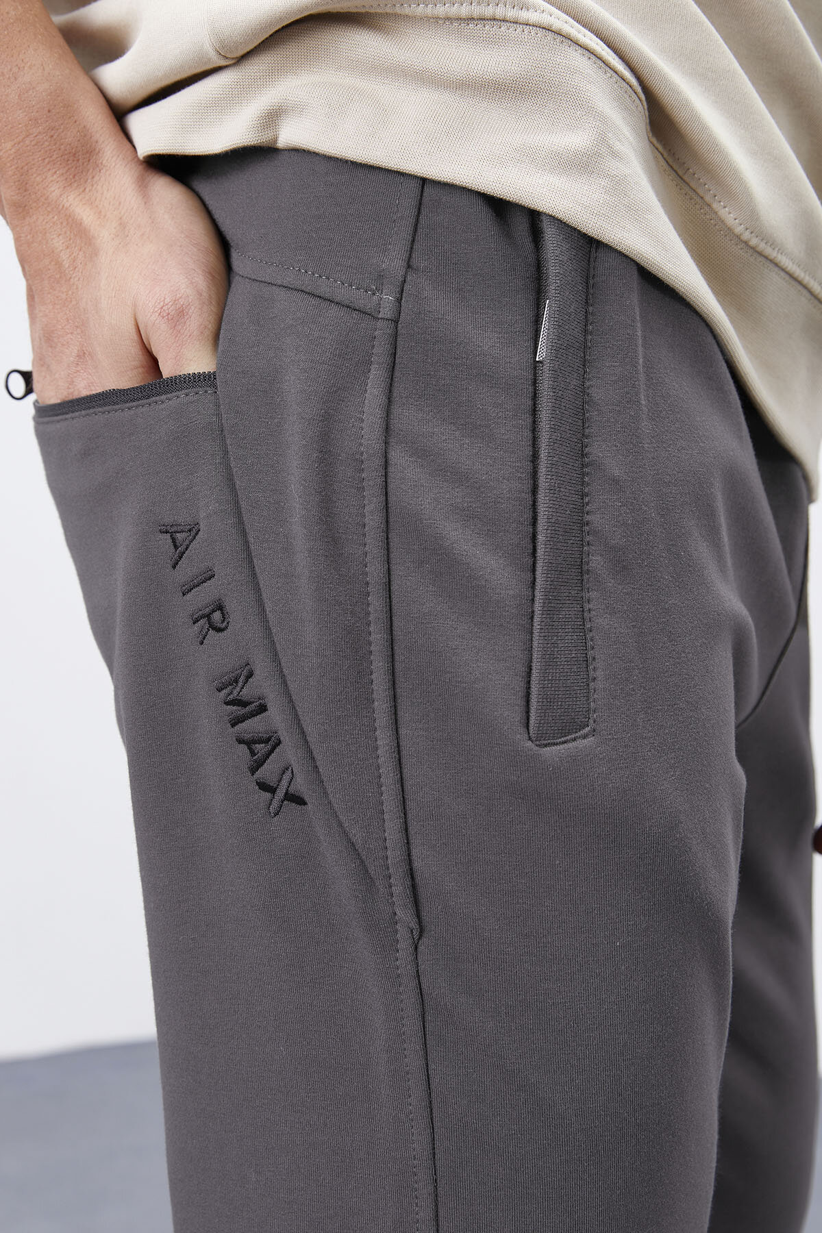 Koyu Gri Fermuar Cepli Dar Kalıp Jogger Erkek Eşofman Alt - 84343