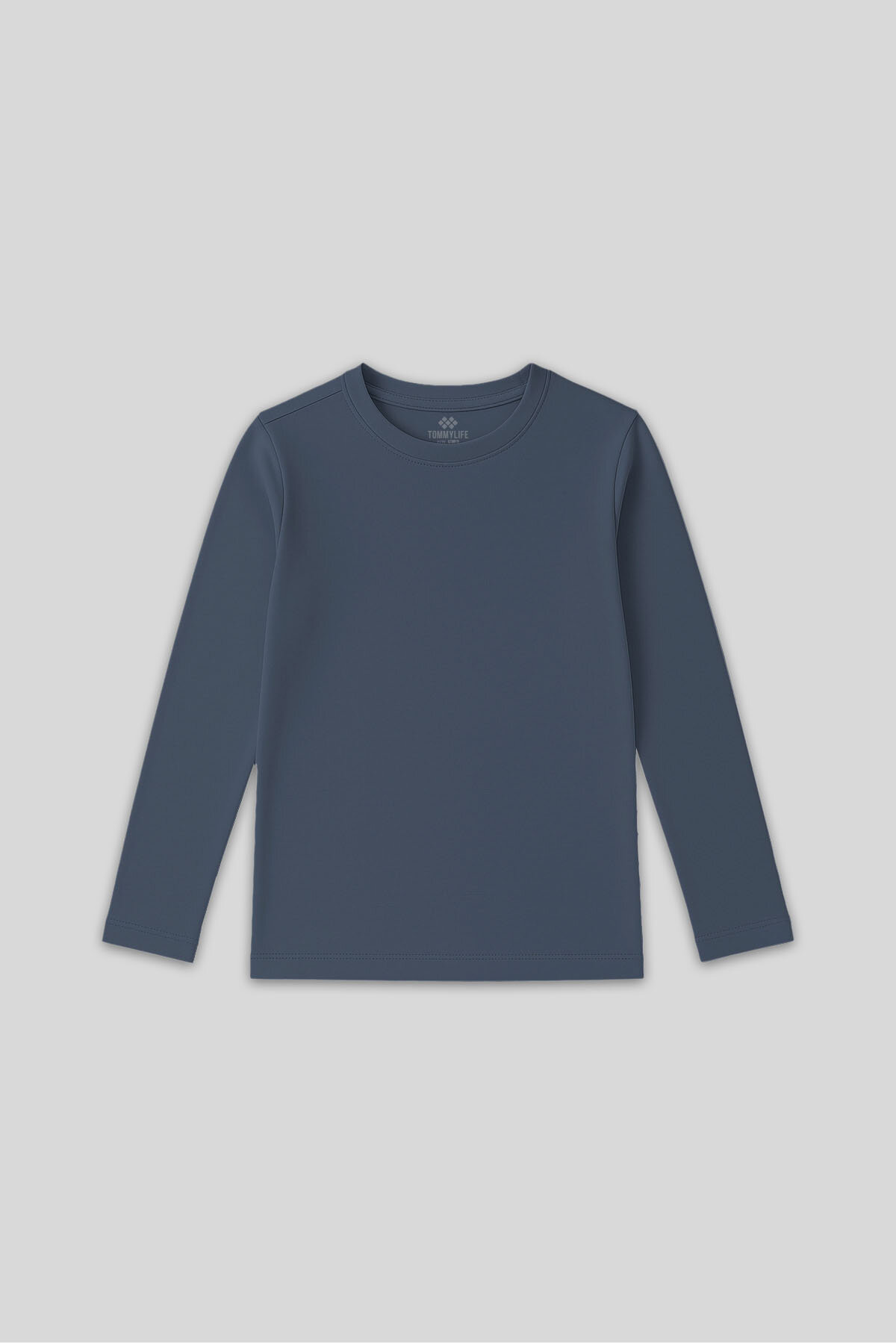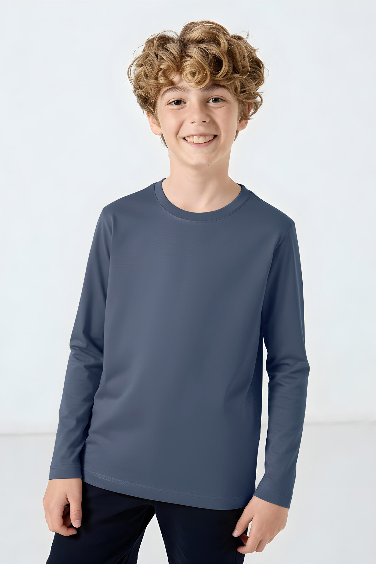 Koyu Mavi O Yaka Standart Fit Basic Uzun Kollu Unisex Çocuk T-Shirt - 11329