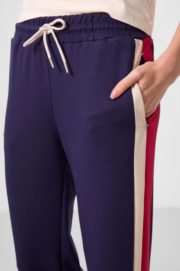 Koyu Mor Yumuşak Dokulu Yan Panel Detaylı Geniş Paça Kadın Palazzo Pantolon - 94671