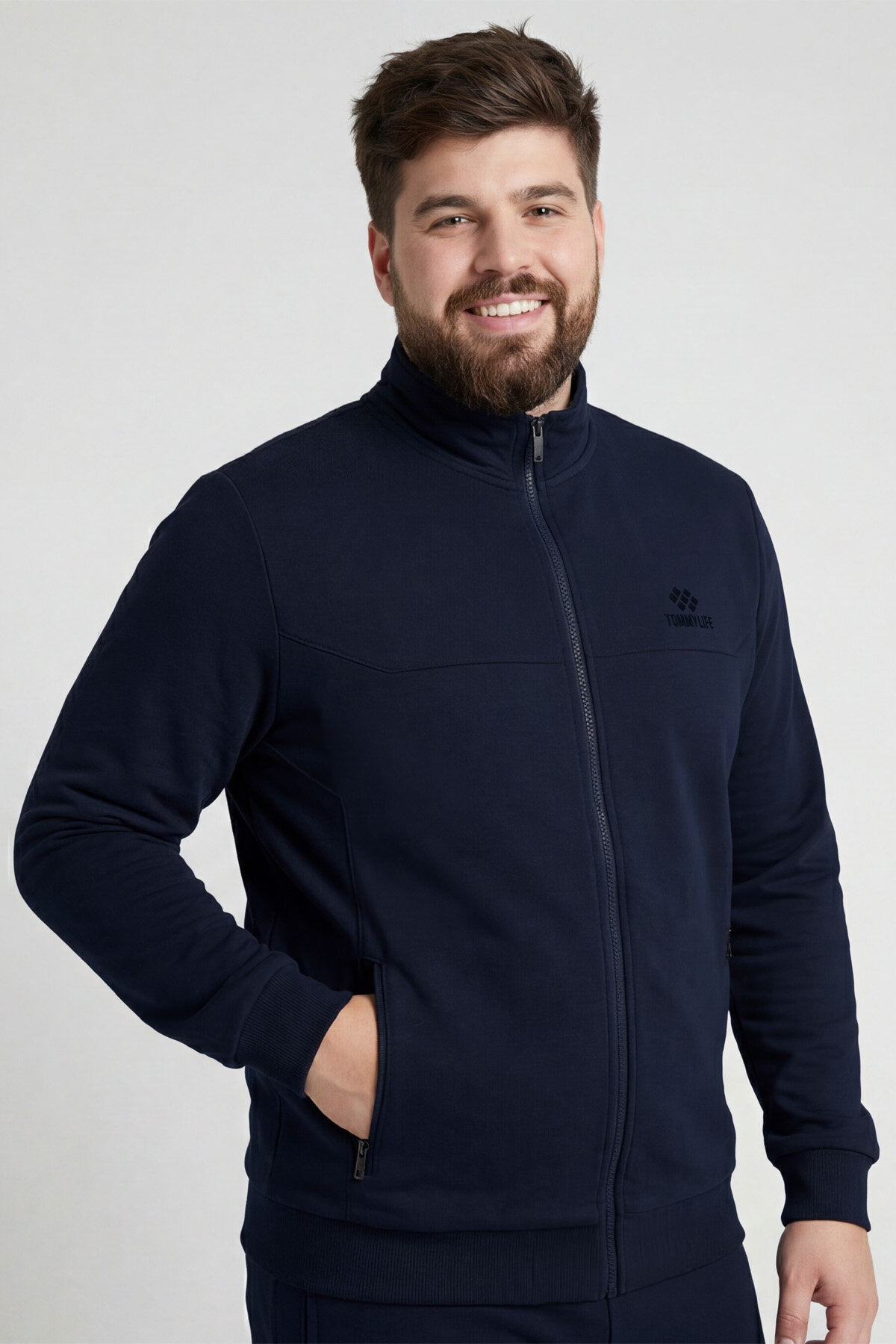 Lacivert Dik Yaka Battal Büyük Beden Erkek Eşofman Takım - 85176