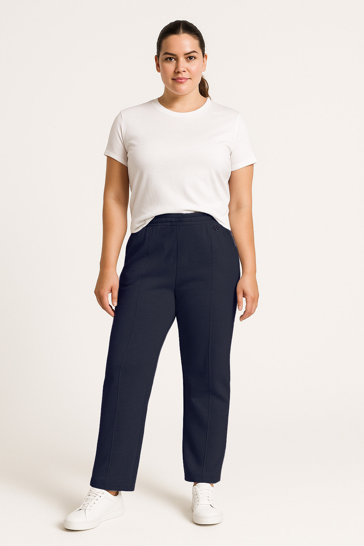 Lacivert Geniş Paça Ön Dikiş Detaylı Battal Büyük Beden Kadın Eşofman Altı - 94654