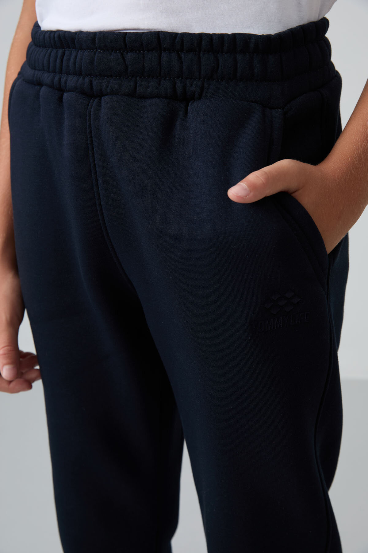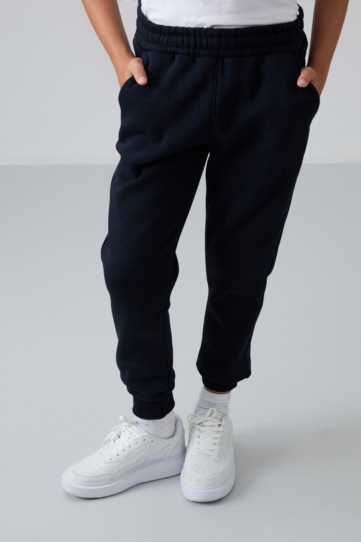 Lacivert Pamuklu Kalın İçi Tüylü Standart Fit Nakışlı Erkek Çocuk Eşofman Alt - 11224