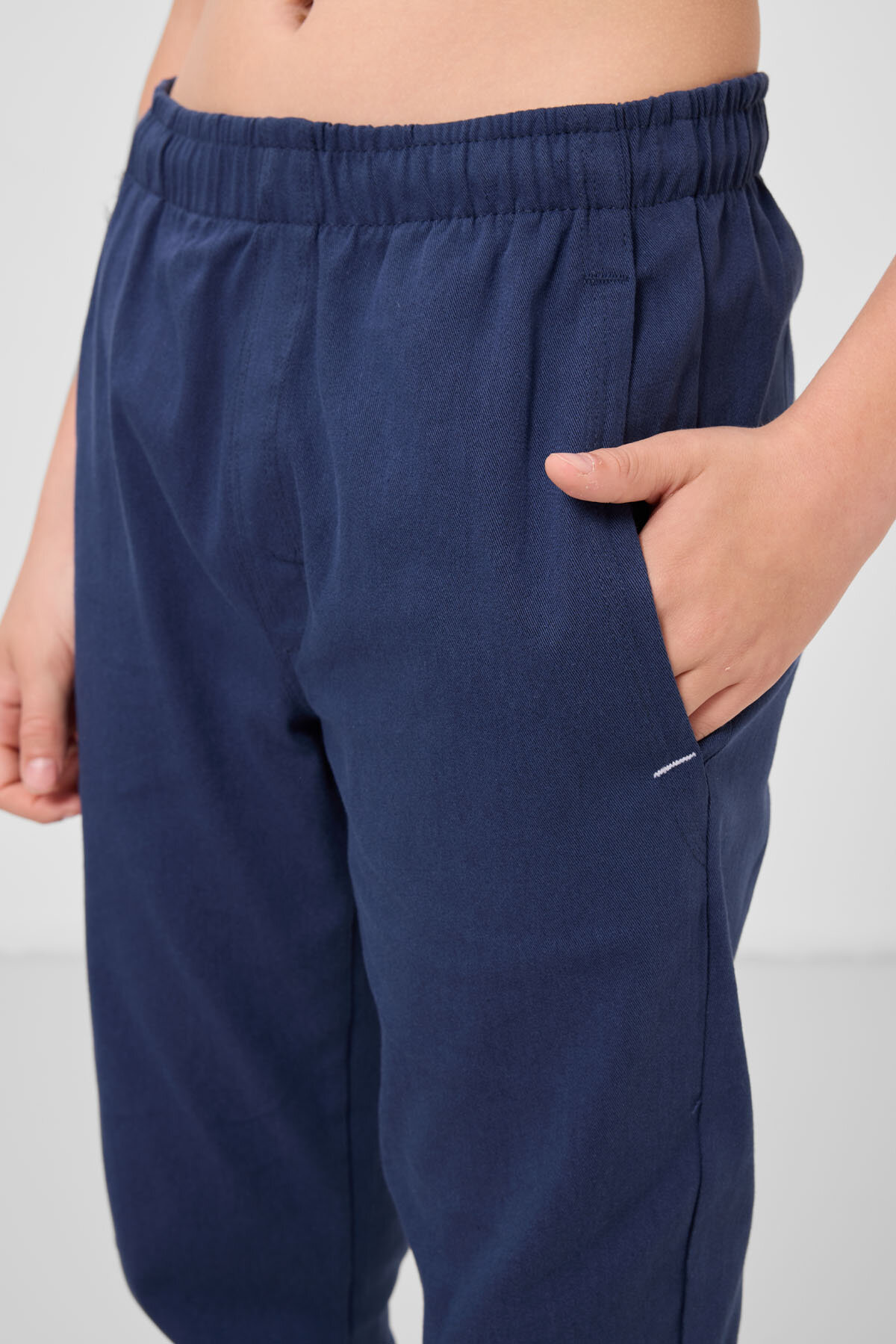 Rahatlığı ve sadeliği bir arada sunan bu pantolon, çocukların aktif yaşamına uyum sağlayacak şekilde tasarlandı. Esnek ve hafif kumaşı sayesinde gün boyu konfor sağlar, standart kalıbı ise modern ve düzenli bir duruş kazandırır. Giyimi kolaylaştıran elastik beli ve günlük stile uygun tasarımıyla, dolapların vazgeçilmez parçaları arasında yerini alır.