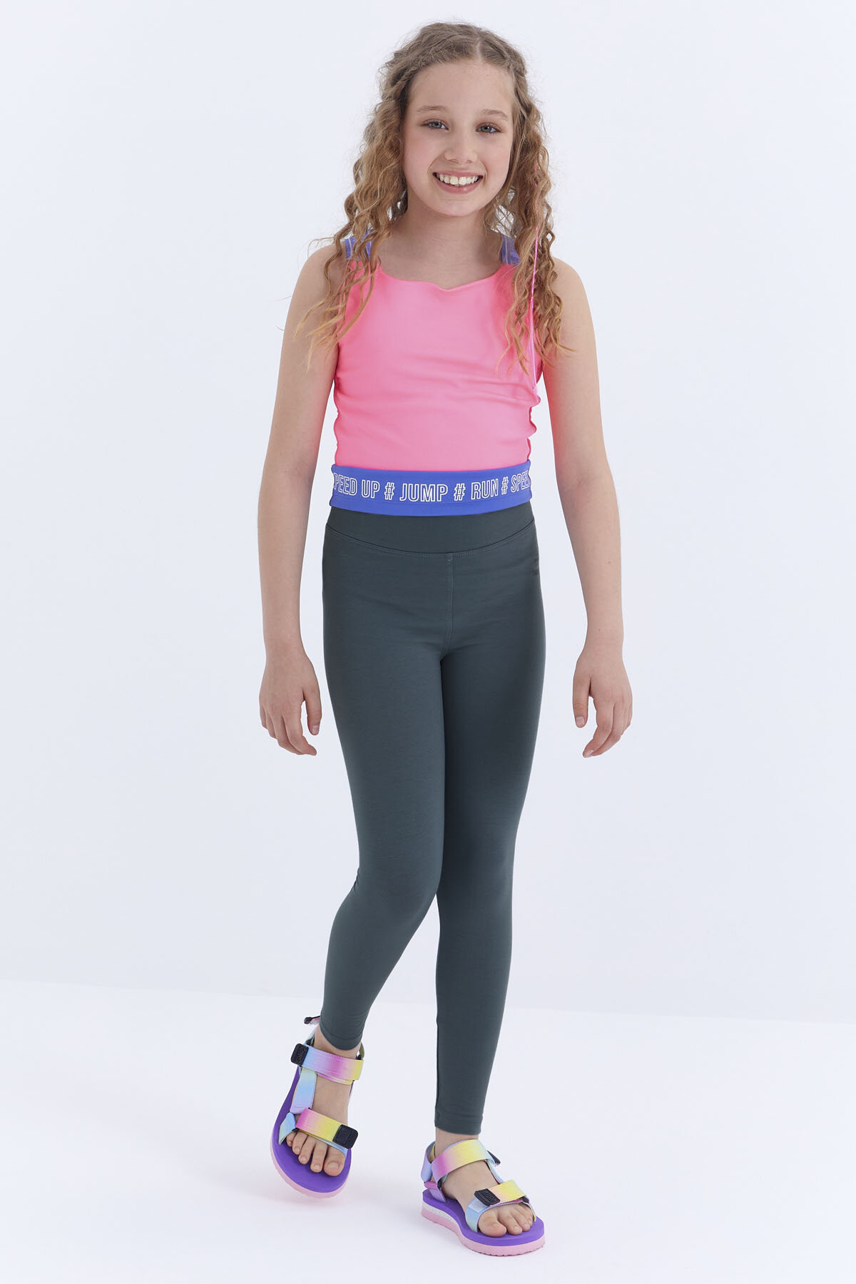 Orman Yeşili Yüksek Bel Dar Paça Kız Çocuk Tayt - 75047