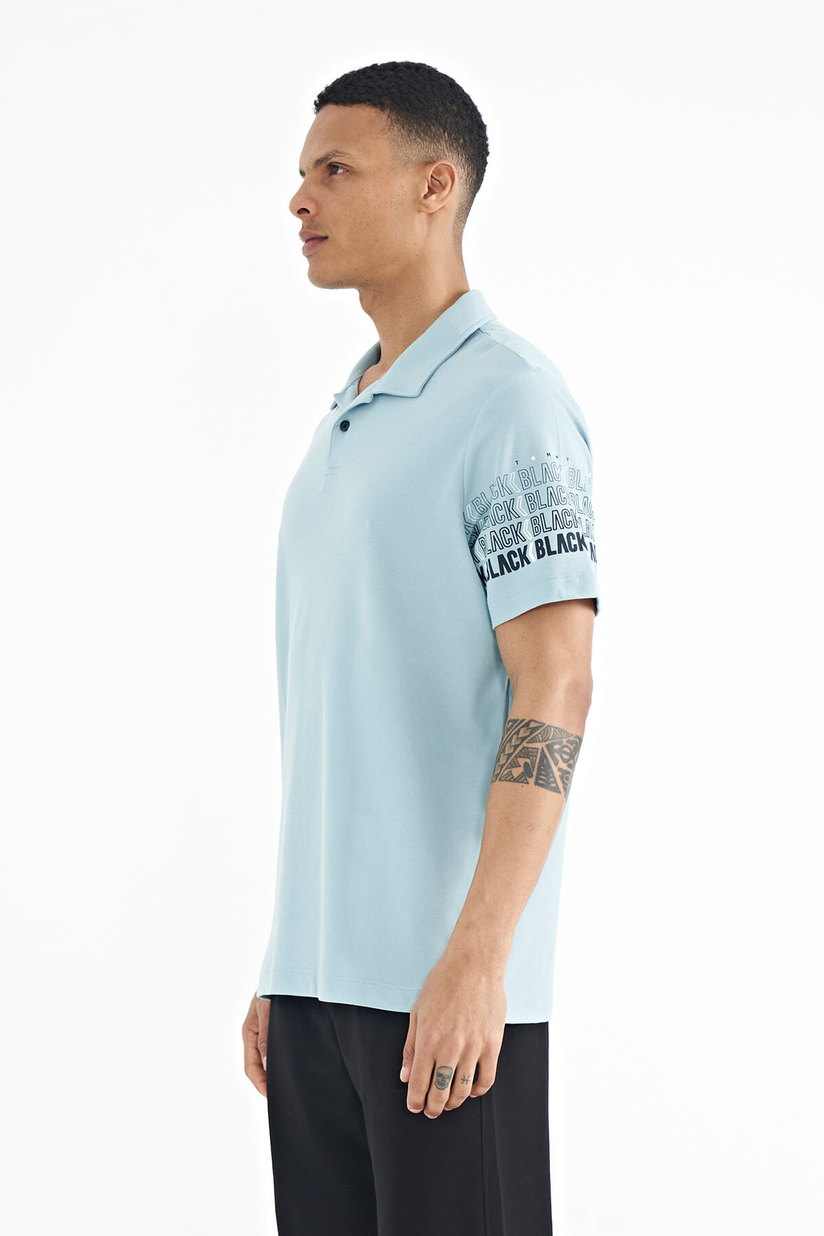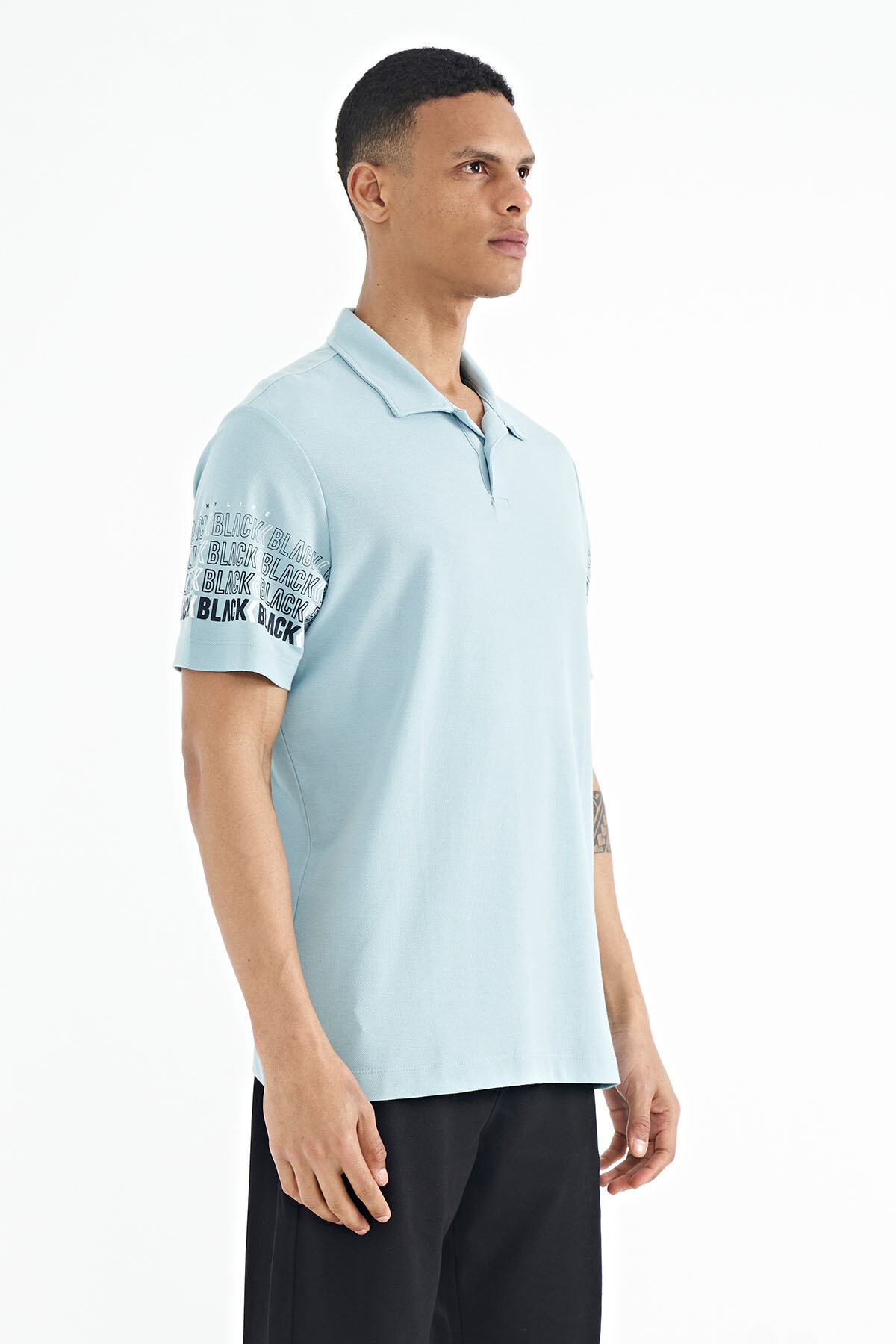 Açık Mavi Kol Baskı Detaylı Polo Yaka Standart Form Erkek T-shirt - 88240