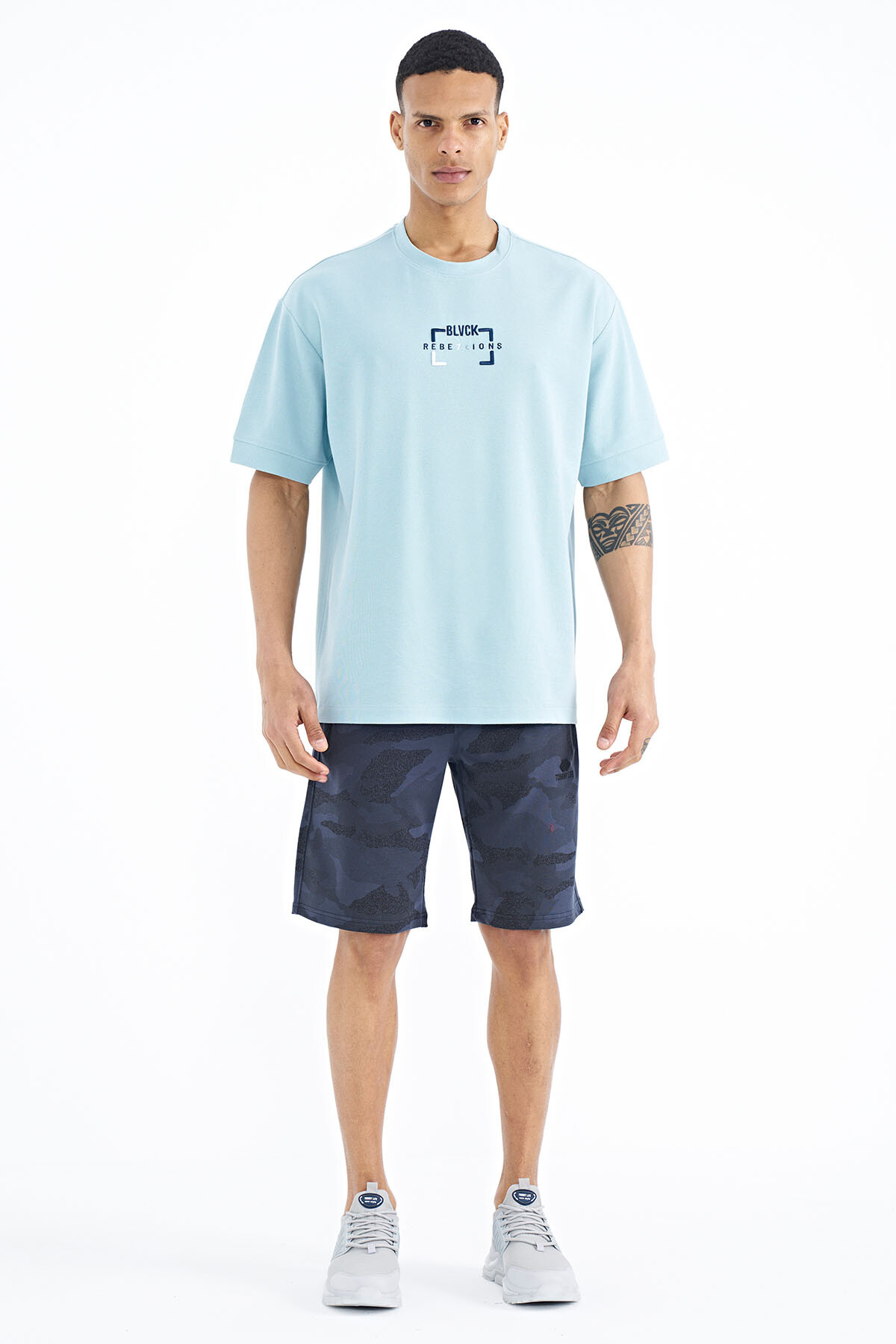 Açık Mavi Yazı Nakışlı O Yaka Oversize Erkek T-Shirt - 88192