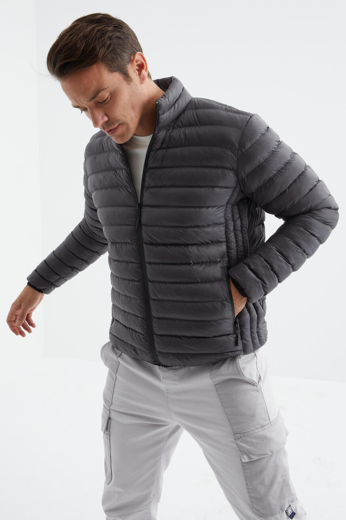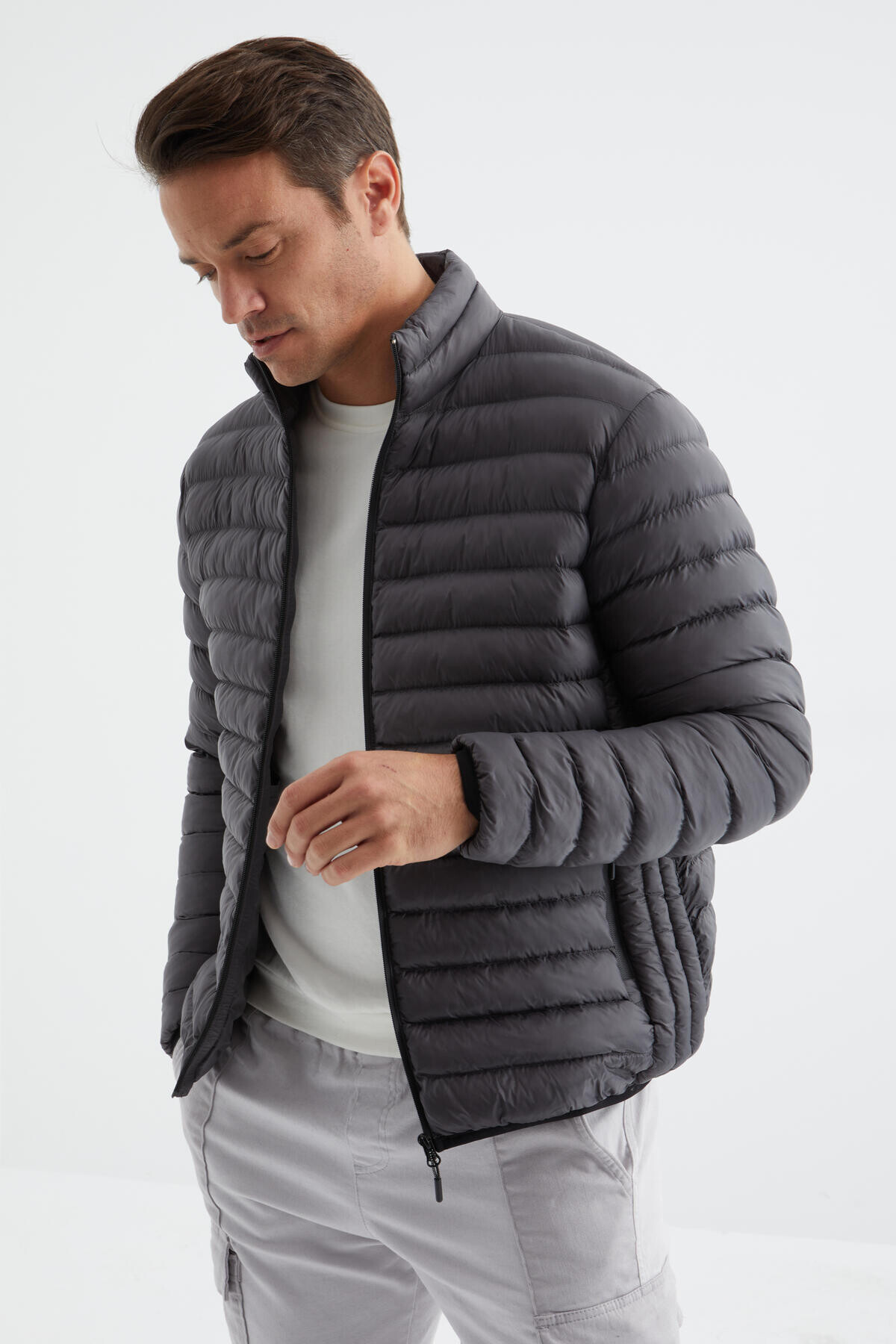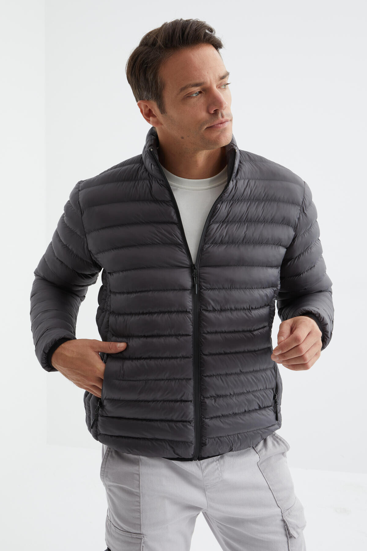 Antrasit Fermuarlı Standart Kalıp Soğuğa Dayanıklı Erkek Şişme Mont - 88166
