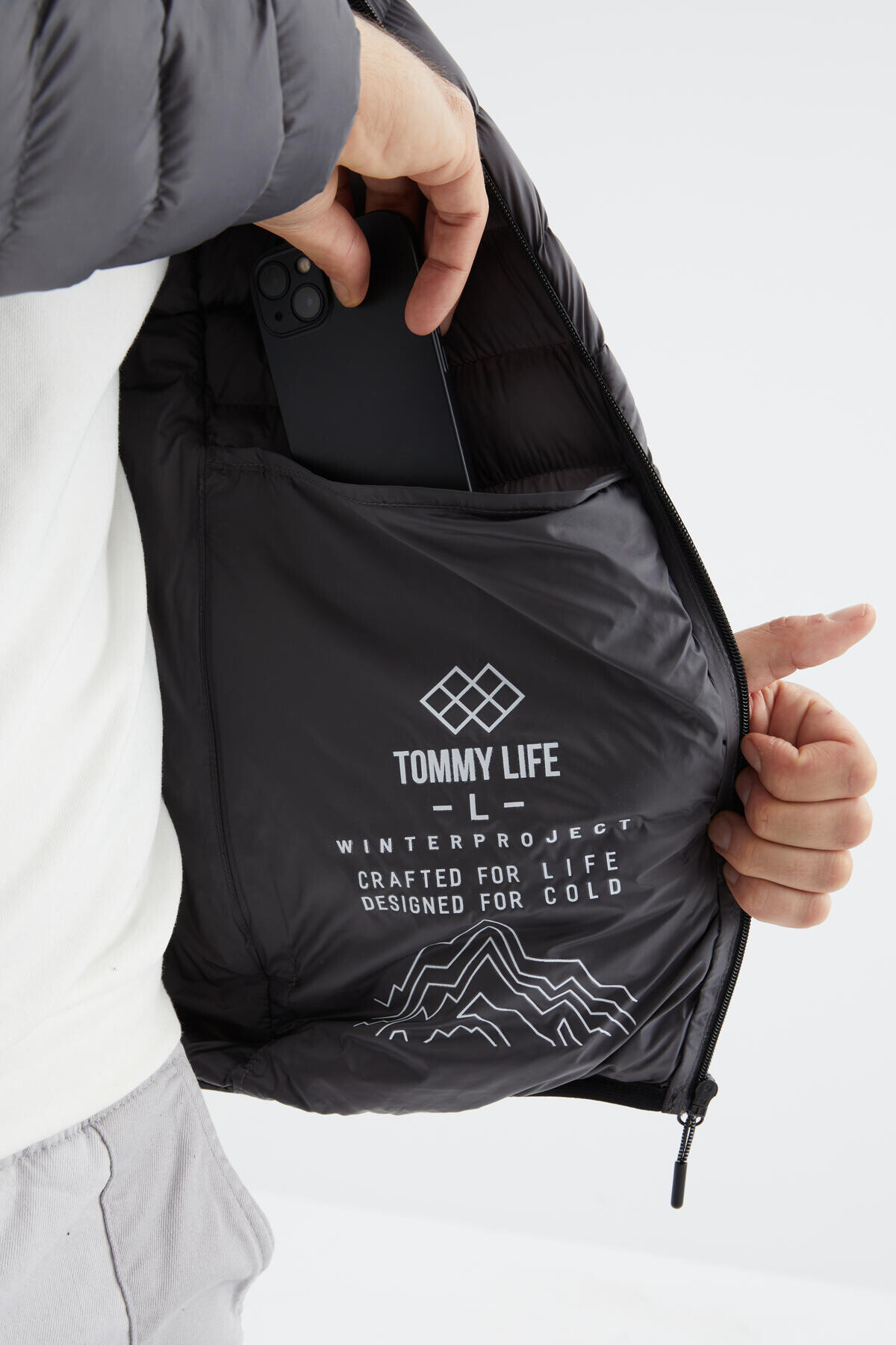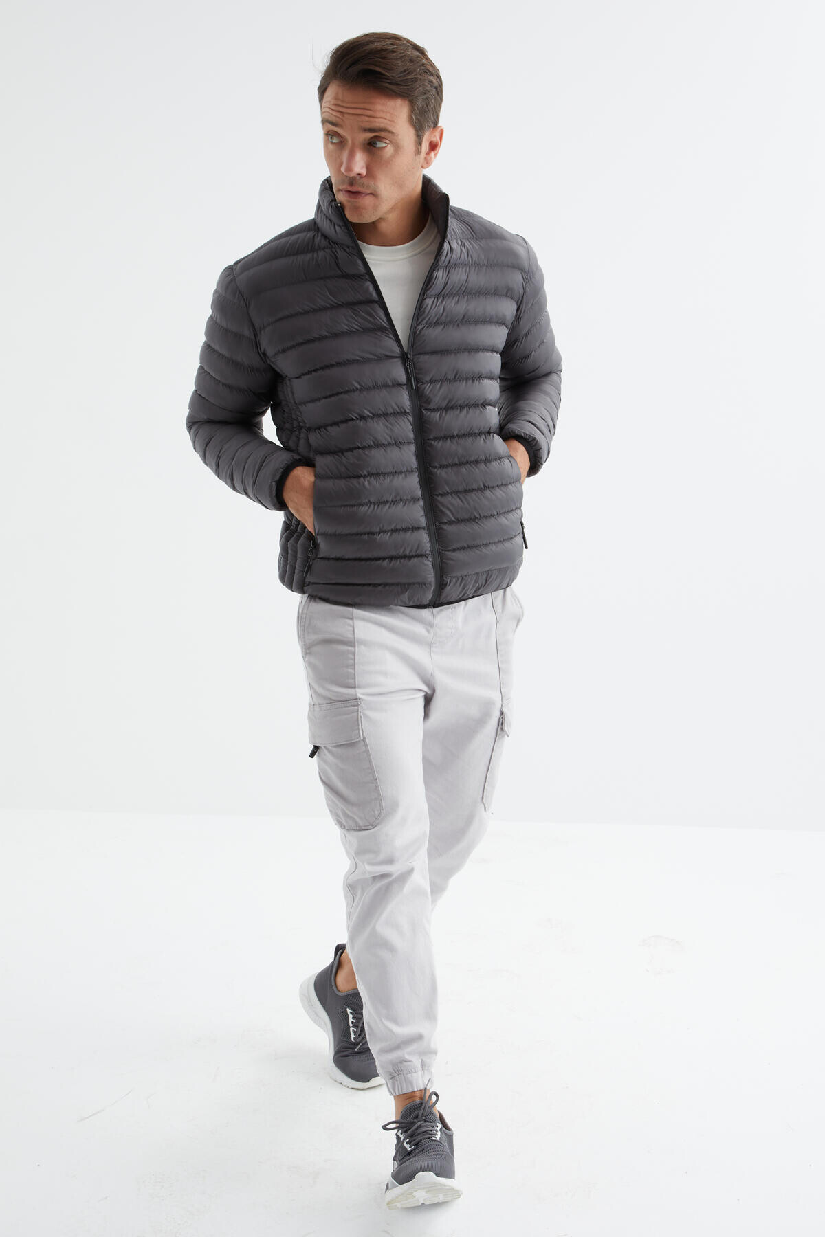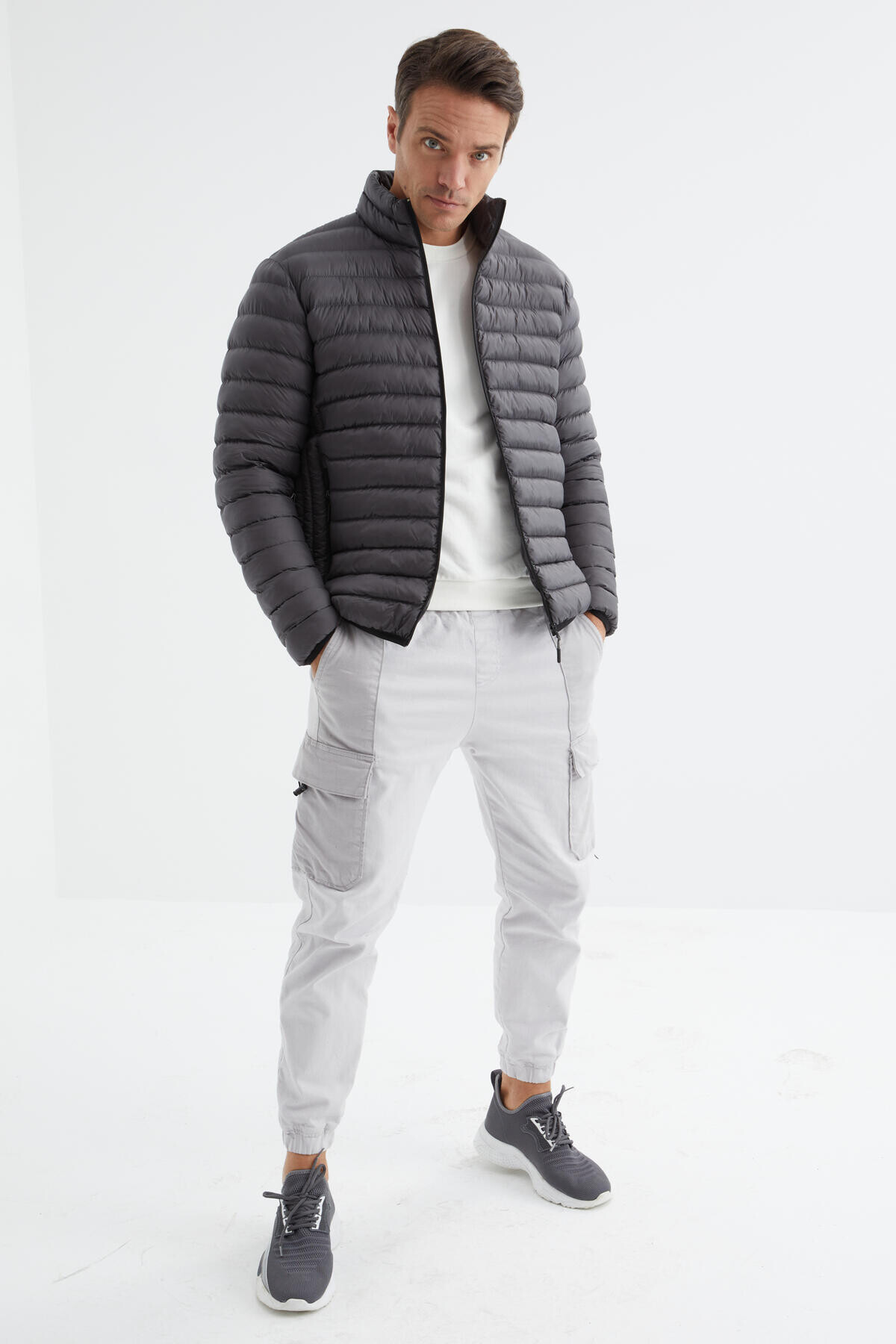 Antrasit Fermuarlı Standart Kalıp Soğuğa Dayanıklı Erkek Şişme Mont - 88166