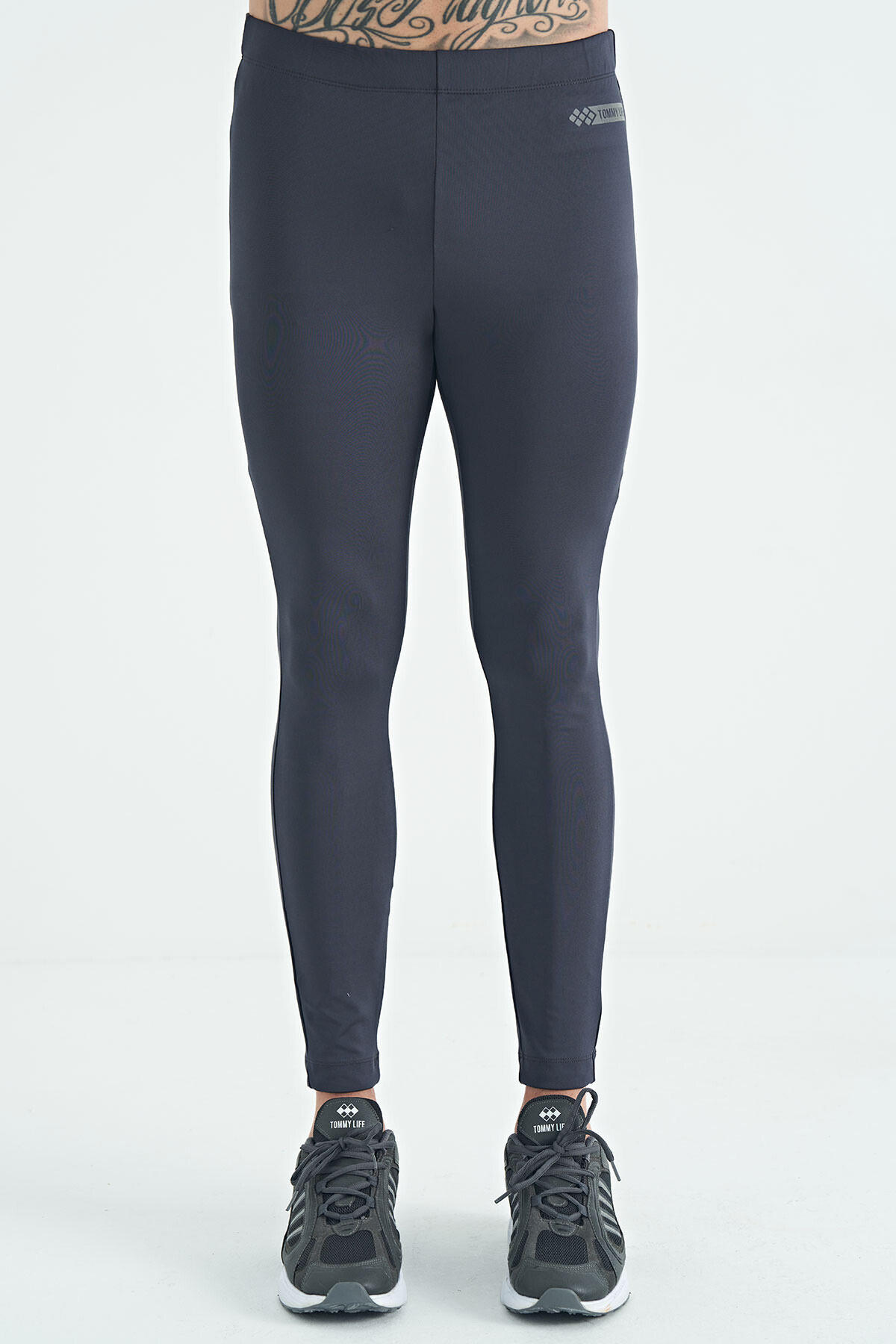 Antrasit Logo Baskılı Yüksek Bel Slim Fit Aktif Spor Erkek Tayt - 84989