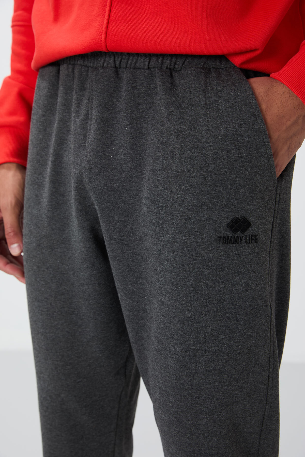 Antrasit Melanj Klasik Cepli Standart Kalıp Manşetli Erkek Eşofman Alt - 84652