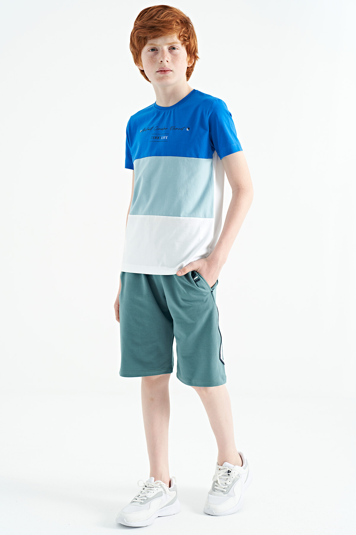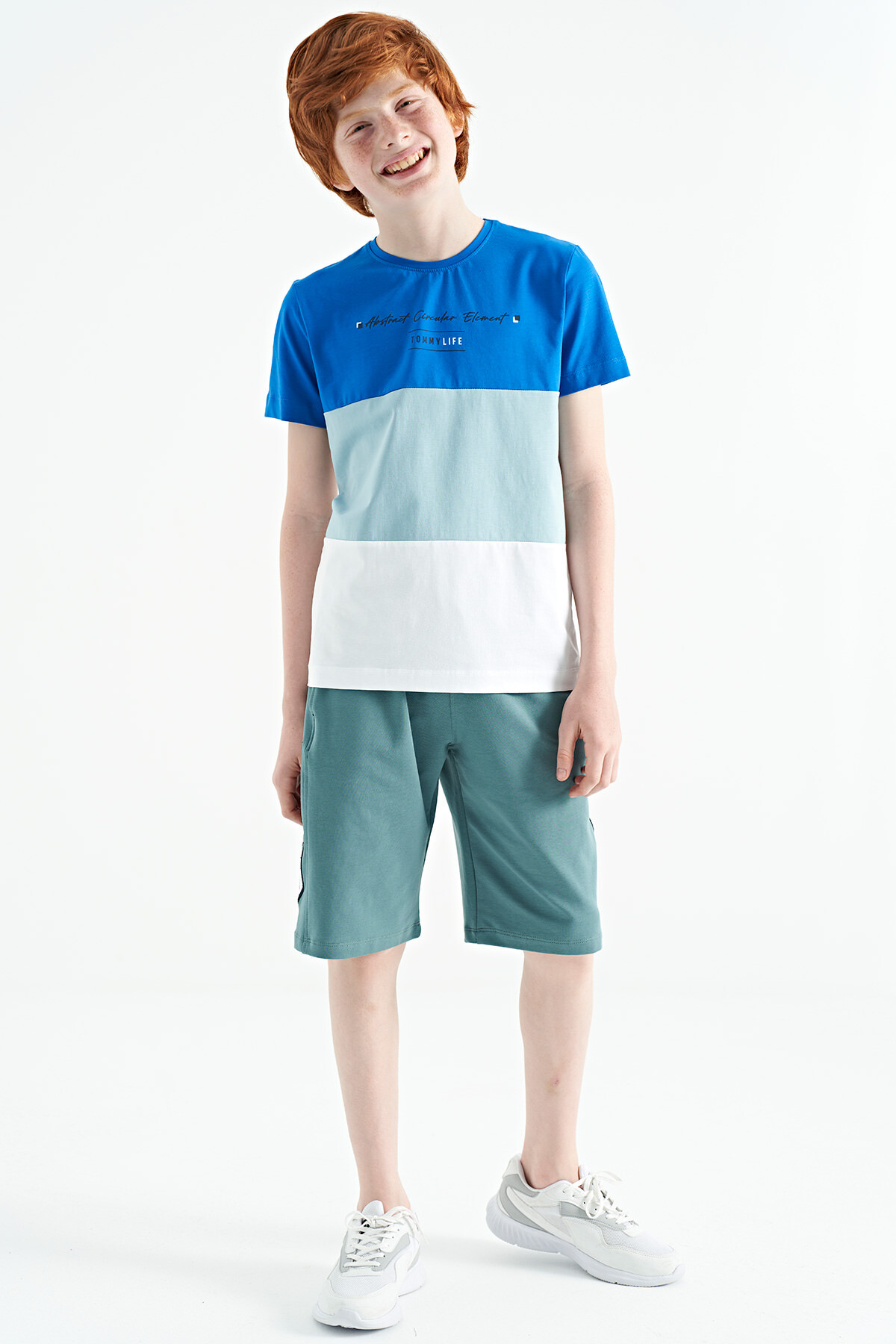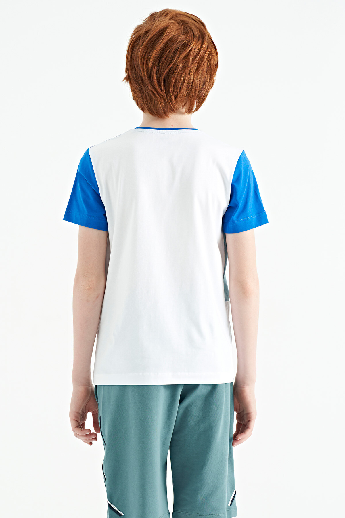 Beyaz Renk Bloklu O Yaka Baskı Detaylı Standart Kalıp Erkek Çocuk T-Shirt - 11135