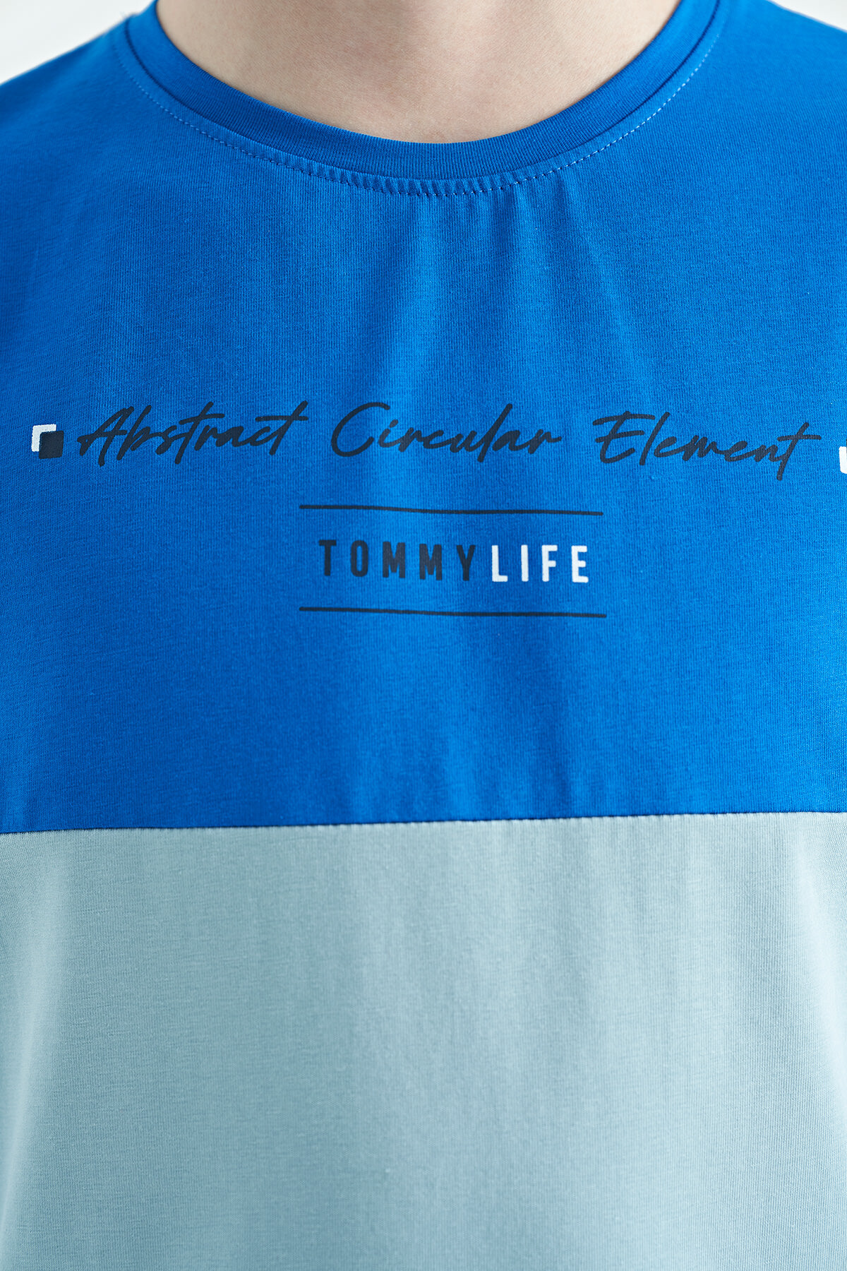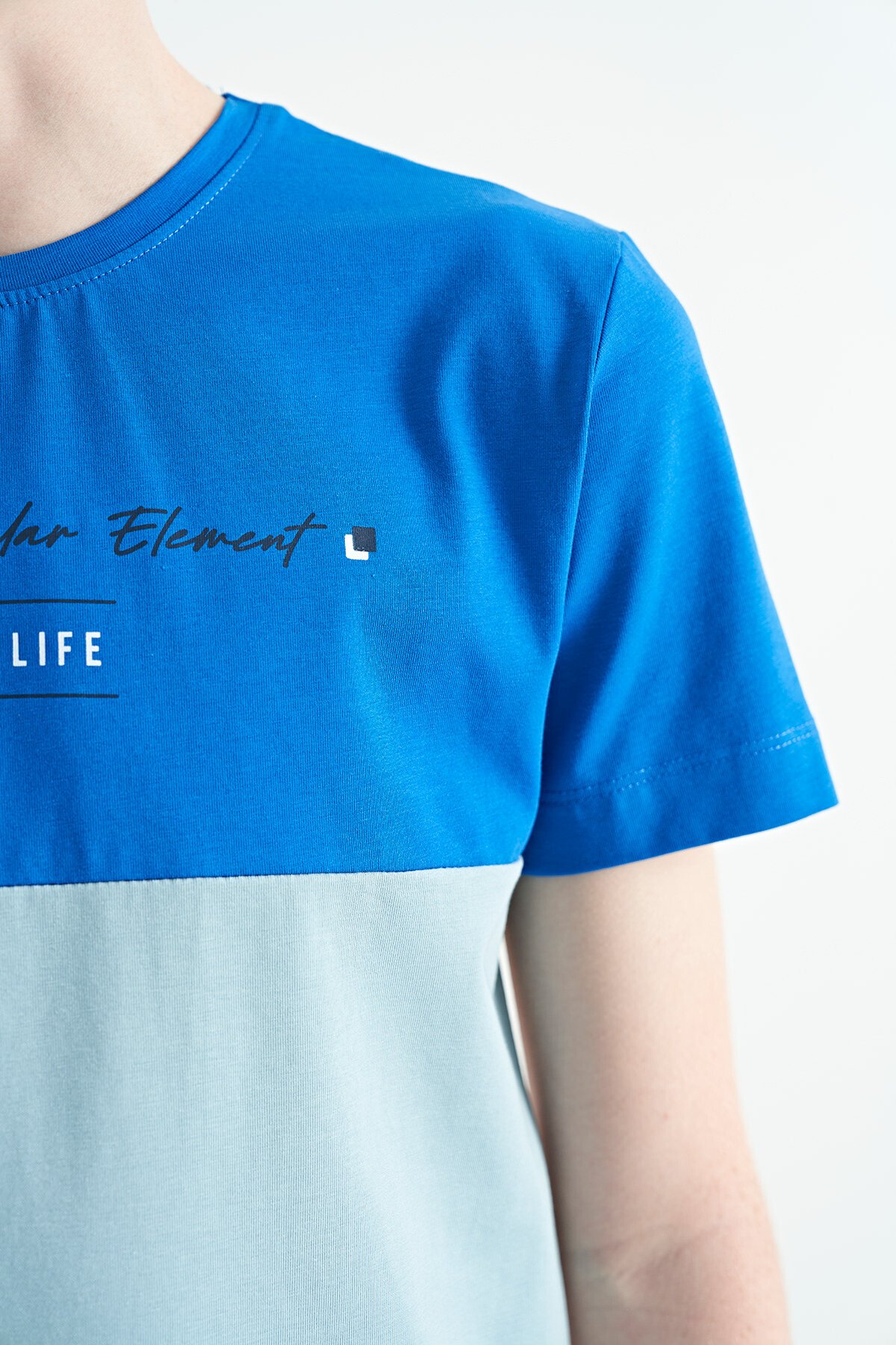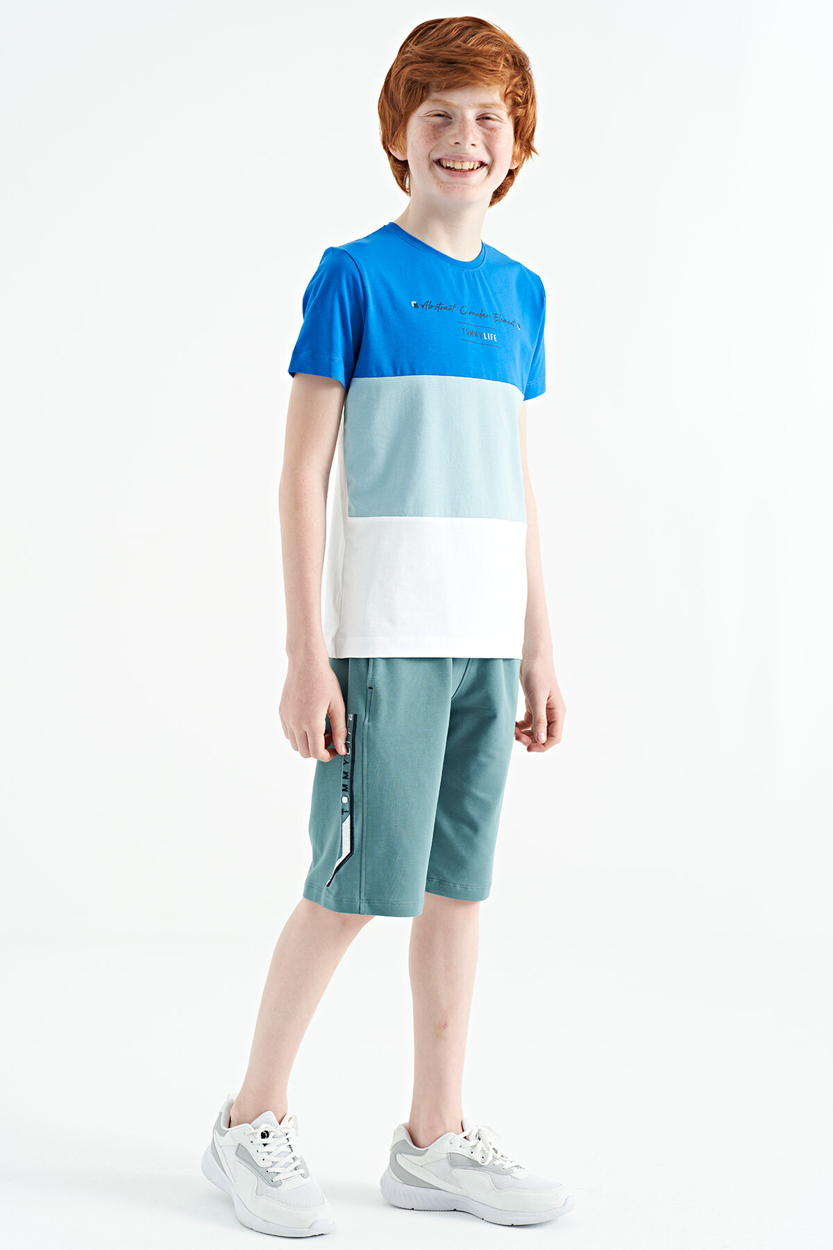 Beyaz Renk Bloklu O Yaka Baskı Detaylı Standart Kalıp Erkek Çocuk T-Shirt - 11135
