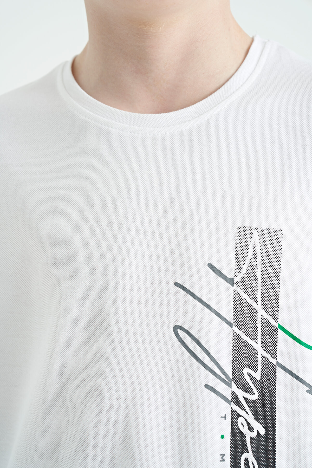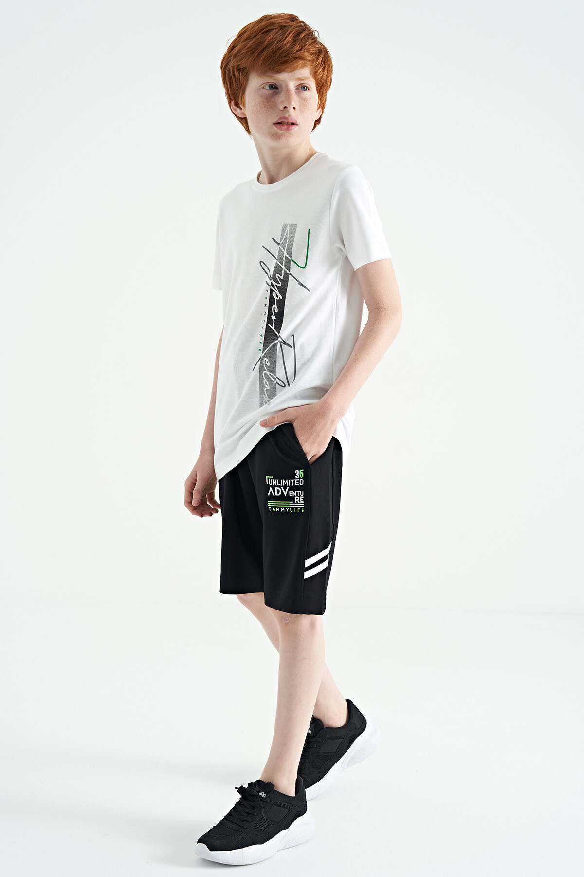 Beyaz Yazı Baskılı O Yaka Standart Kalıp Erkek Çocuk T-Shirt - 11119