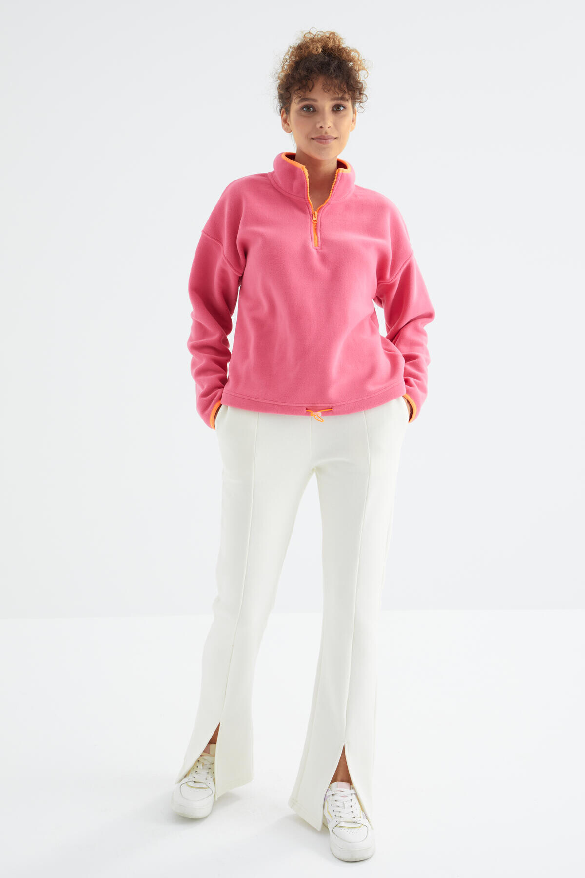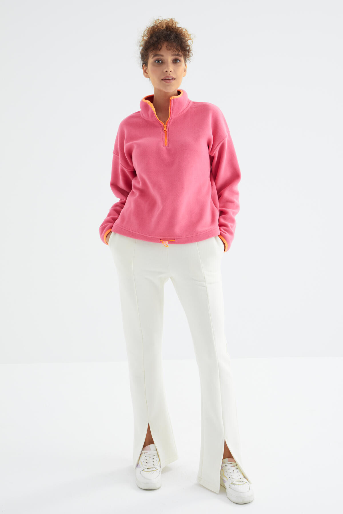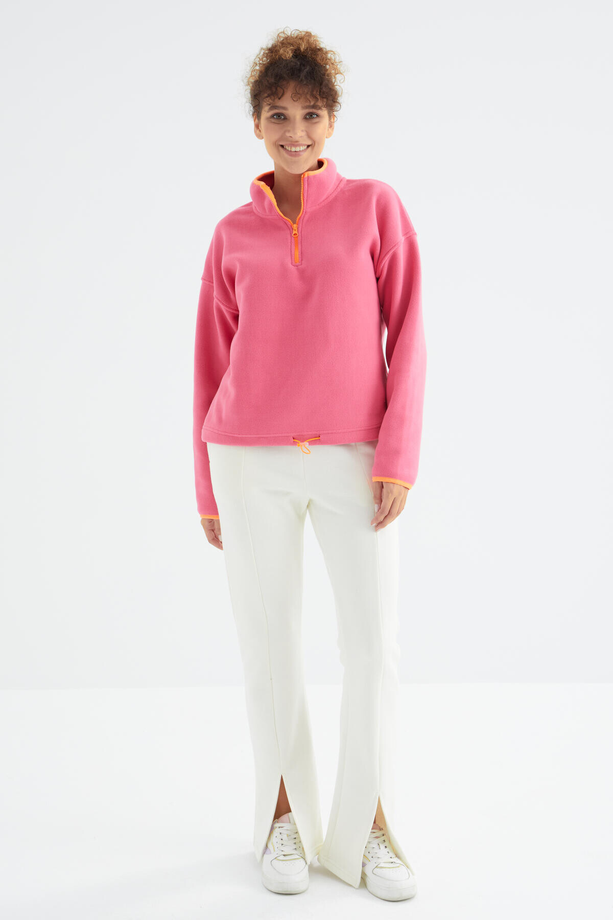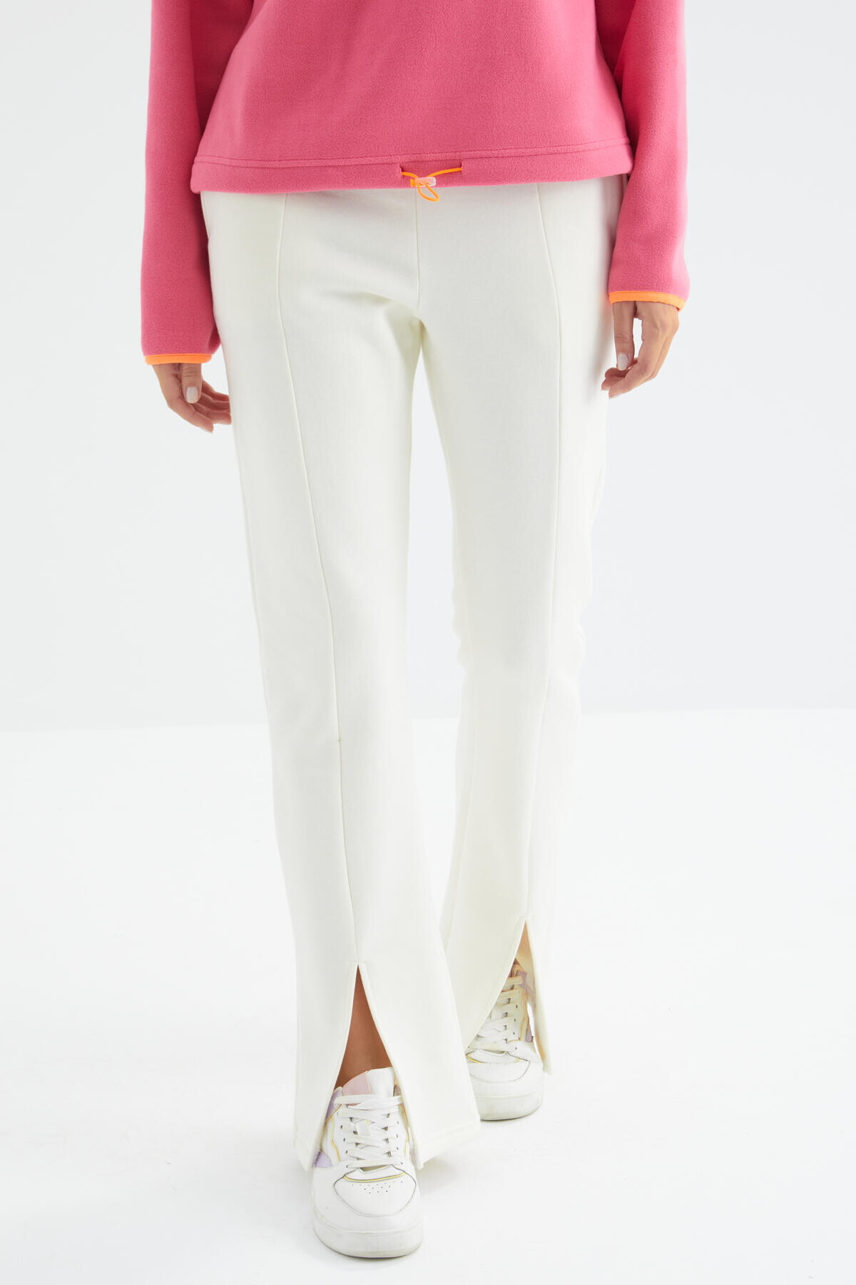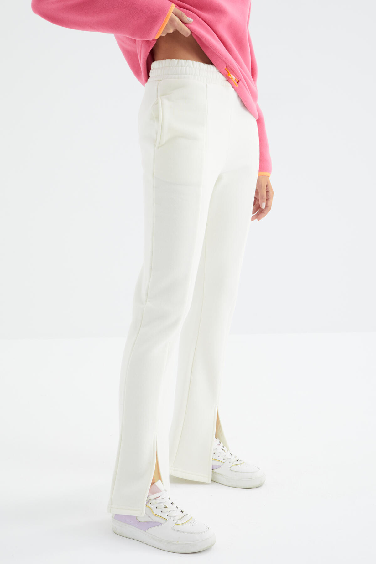 Ekru Yüksek Bel Ön Yırtmaç Detaylı Yan Cepli Rahat Form Kadın Eşofman Alt - 94625
