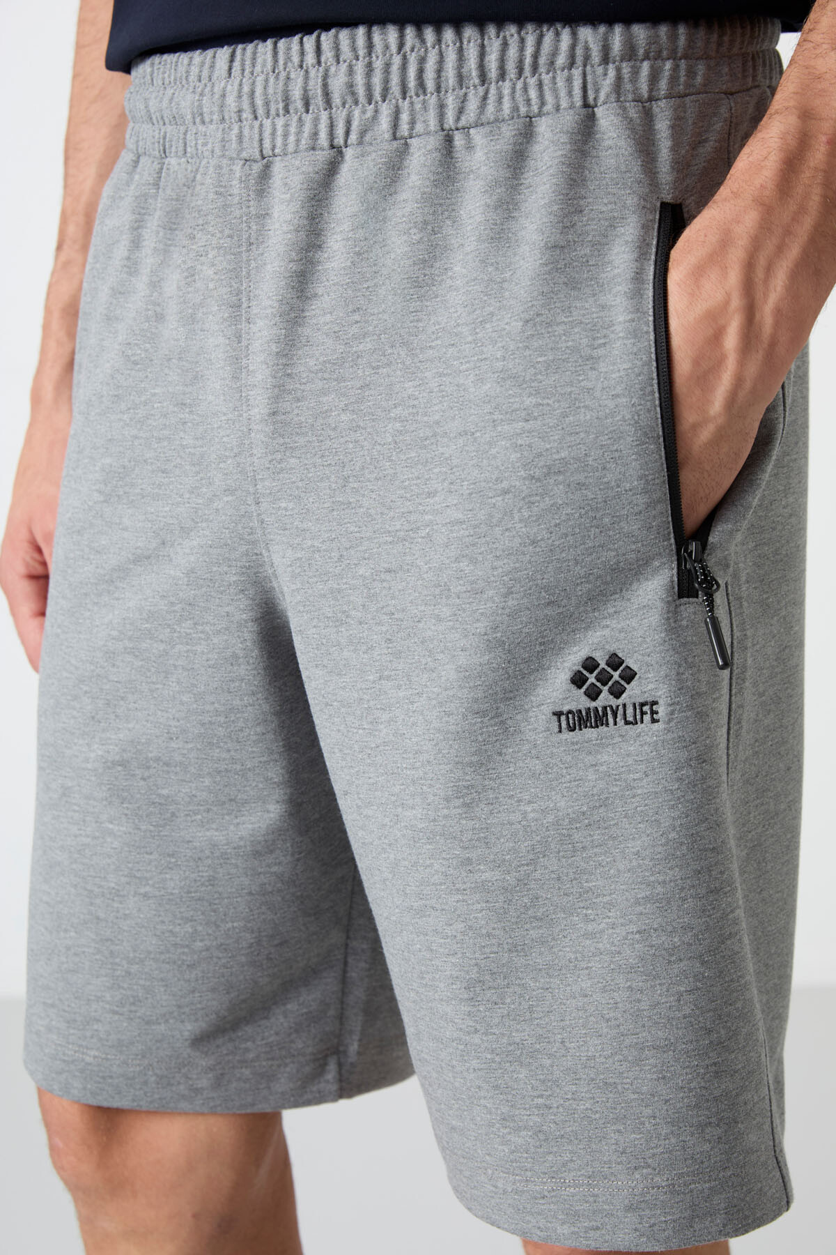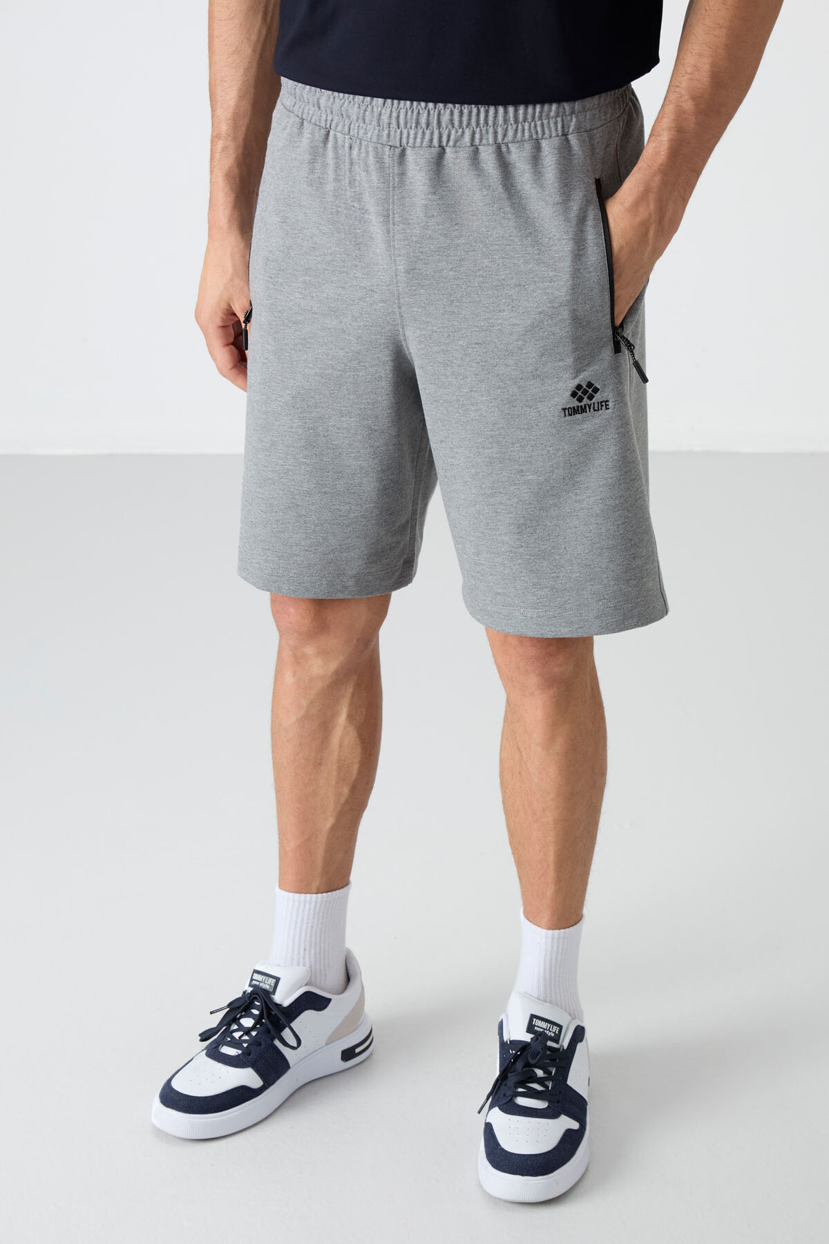 Gri Melanj Gizli Fermuar Arka Cepli Bağcıklı Standart Kalıp Erkek Şort gizli fermuarı ve logo tasarımıyla dolabındaki ürünlerle eşleşmek için senin sipariş etmeni bekliyor. Basic veya desenli t-shirtler ile tarzına sportif şıklığı kazandırmaya ne dersin? Kullanacağın takı ve seçeceğin spor ayakkabı ile sportif şıklığı dengede tutabilirsin. Spor faaliyetlerinde, sahil kenarlarında, arkadaşlarınla vakit geçirirken... Standart kalıbı ile seni rahatsız etmeyecek ve hareketlerinizi kolaylaştıracak. İstediğin her yerde daha özgüvenli olabilir, anın tadını çıkarabilirsin.