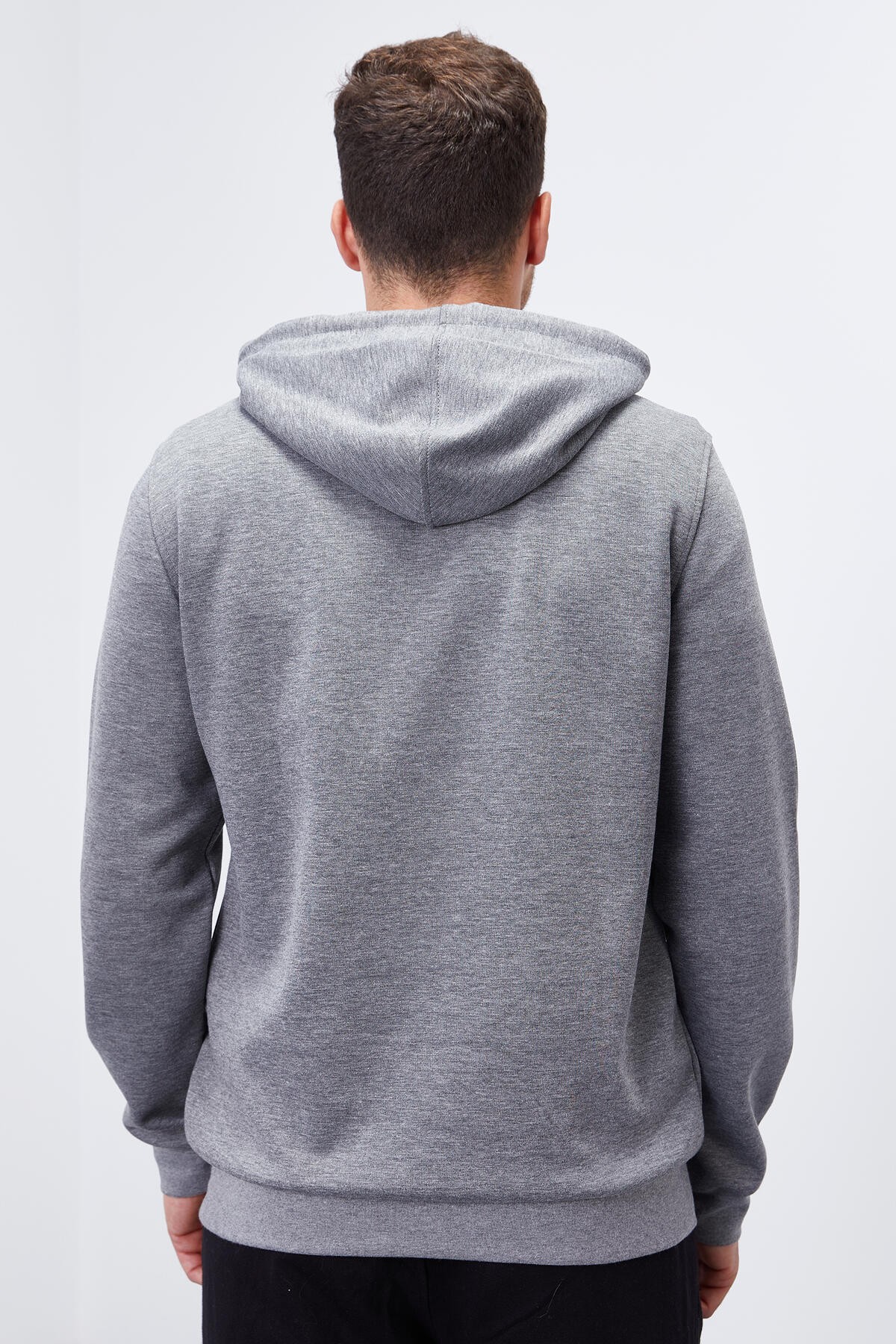 Gri Melanj Kanguru Cep Standart Kalıp Kapüşonlu Erkek Sweatshirt - 87883