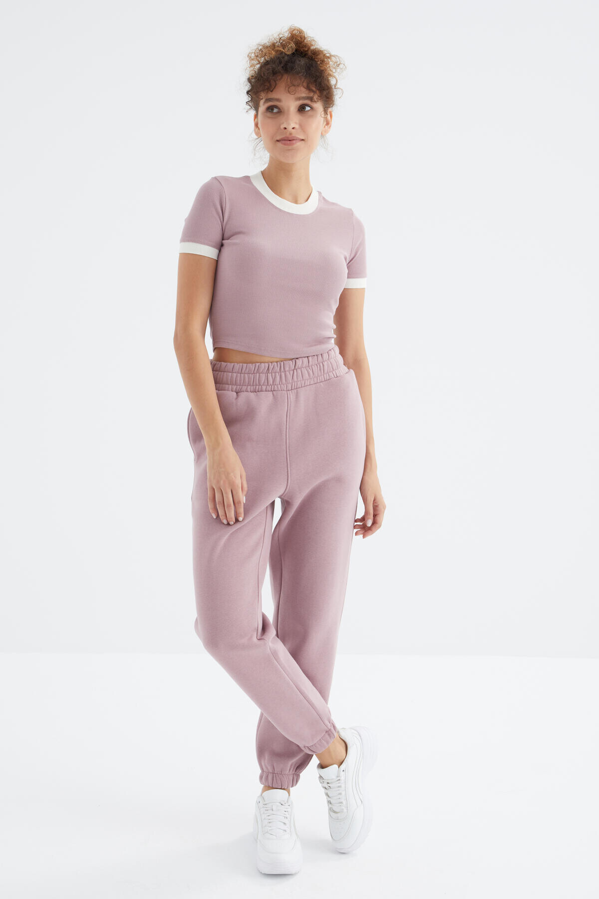 Gül Kurusu Yüksek Bel Rahat Form Basic Jogger Kadın Eşofman Alt - 94624