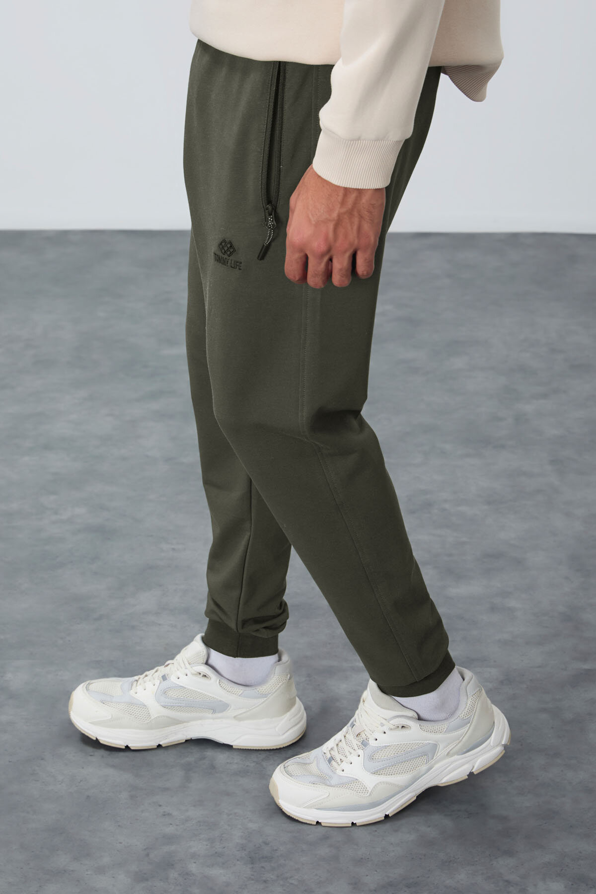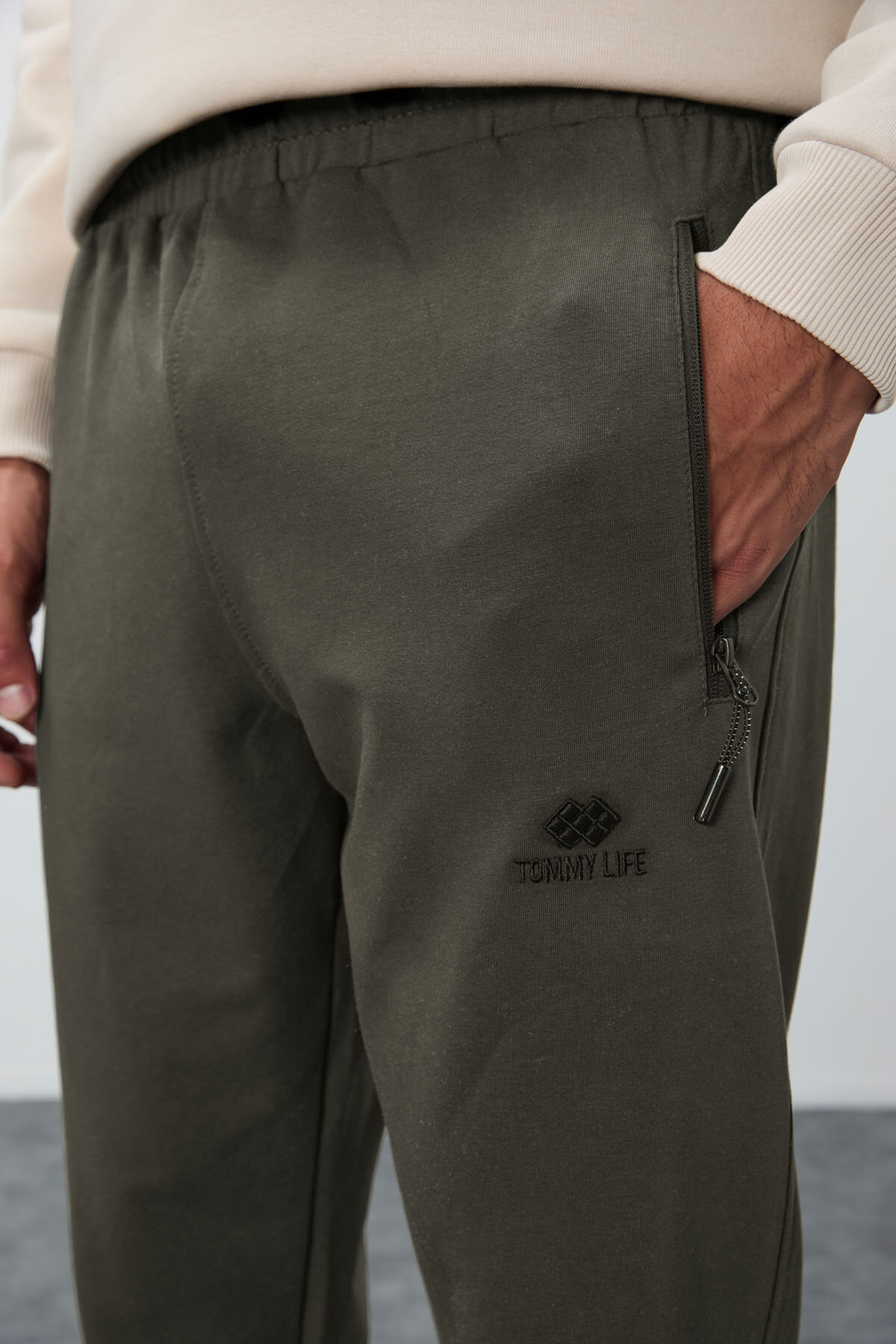 Haki Fermuar Cepli Standart Kalıp Jogger Erkek Eşofman Alt - 84651