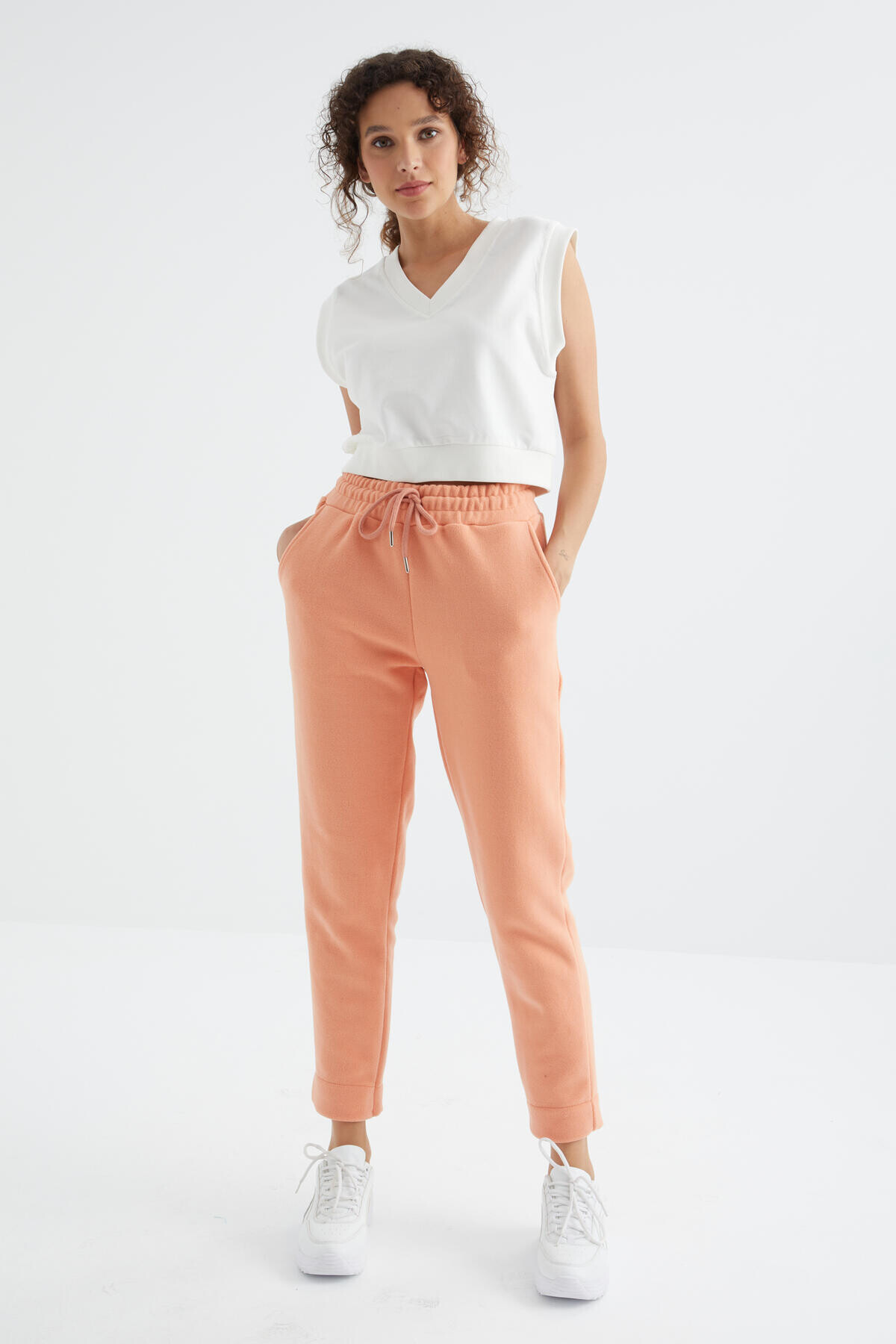 Kavun Içi Yüksel Bel Rahat Form Geniş Paça Cepli Kadın Polar Eşofman Alt bağcıklı beli, rahat form'u, cepli tasarımı, paçası ve basic duruşuyla soğuk kış aylarında polar kumaşı ile seni hem sıcak tutacak hemde birbirinde farklı stil seçeneği sunacaktır. Tek renk eşofman alt modelimiz ile doğal sade şıklığı yaratmak daha kolay. Modelimizin üstüne kaban ve altına giyebileceğiniz spor ayakkabı ile günlük görüşmelerine, alışverişe ve arkadaşlarınızla vakit geçirirken kullanabilirsin.