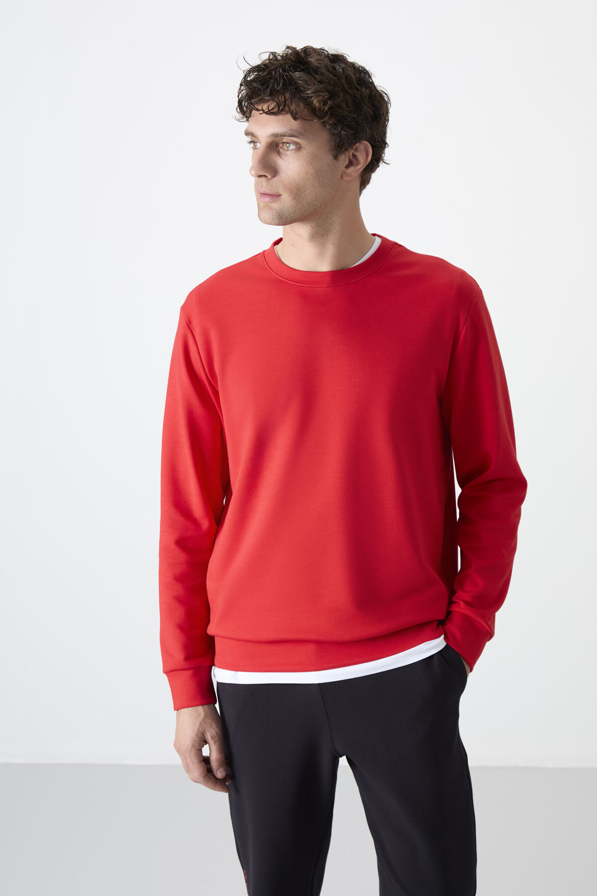 Kırmızı Basic O Yaka Rahat Form Erkek Sweatshirt en uygun fiyatlarla sizlerle birlikte. Kış aylarınızı tarz sahibi biri olarak geçirmeye ne dersiniz? Hepinizin cevabını duyar gibiyim. Ürünümüz her kombine uyum sağlamasıyla birlikte kumaşı sayesinde soğuk havalarda sizi sıcak tutacak hemde renk seçenekleri ile enerjik bir görünüm sunacaktır. kalıbı sizi rahat hareket ettirmekle birlikte gün içerisinde sizi sıkmayacaktır. Tarzınıza kolay bir şekilde uyarlayabileceğiniz ürünümüzü sepetinize eklemeyi unutmayın.