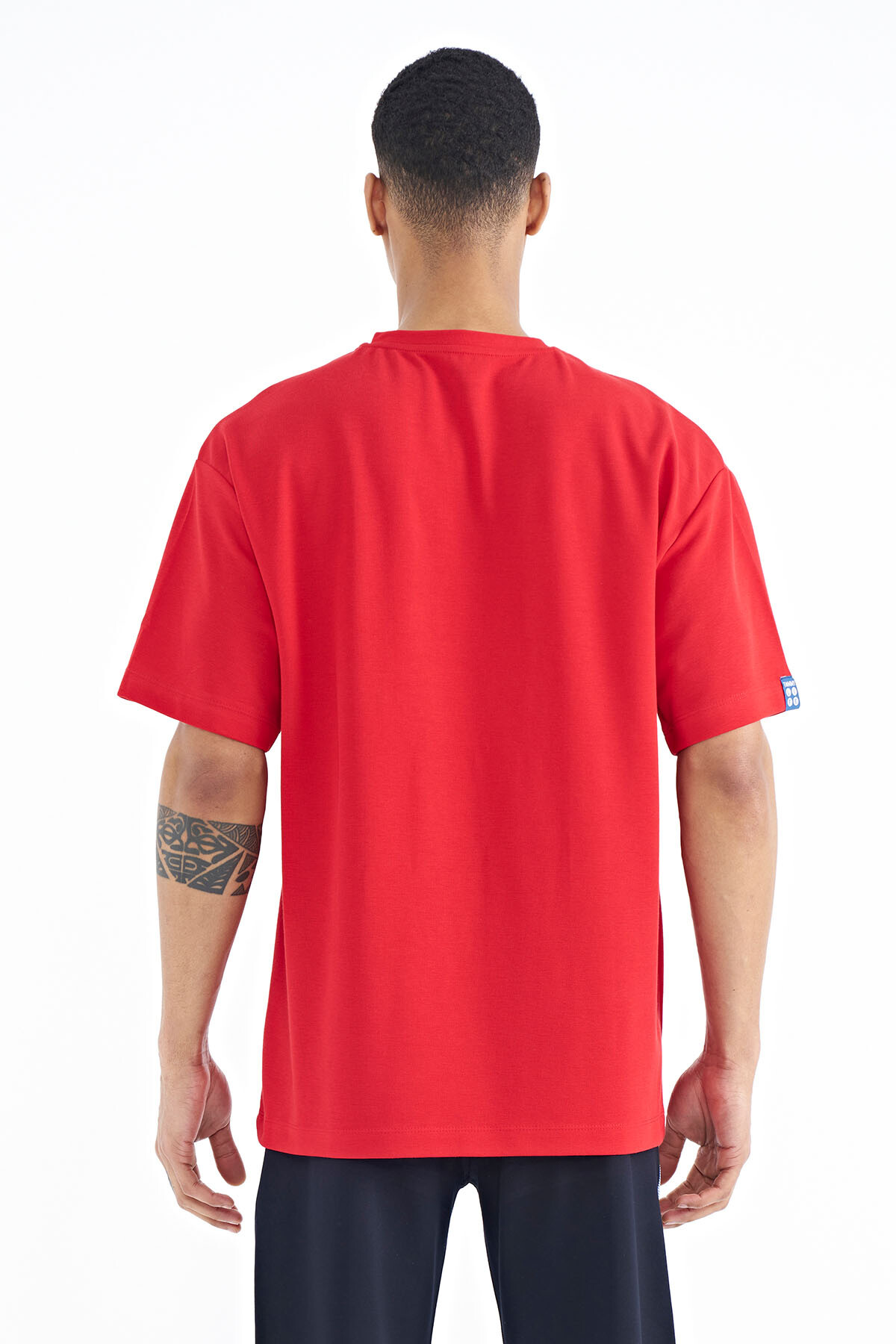 Kırmızı Kol Arma Detaylı Basic Oversize Erkek T-Shirt - 88193