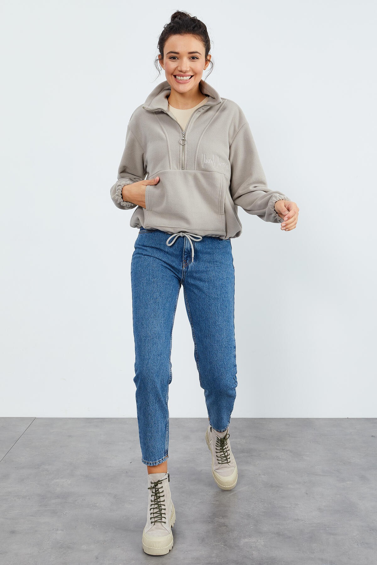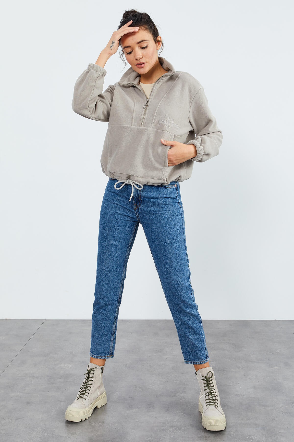 Koyu Bej Yarım Fermuar Etek Ucu Büzgülü Kadın Polar Oversize Sweatshirt Kış ayında polar üretimi sayesinde sizi sıcak tutacak. Gündelik hayatınızda, okulda veya iş hayatınızda sizi tek bir mekanla kısıtlamayıp birden fazla stil seçeneği sunar. Sonbahar aylarında kot şortlarla kış aylarında kot pantolanlarla şık bir görünüm elde edebilirsiniz. Takılarınız ve ayakkabınızla birlikte bu ürünü ön plana çıkarıp tarz sahibi olabilirsiniz.
