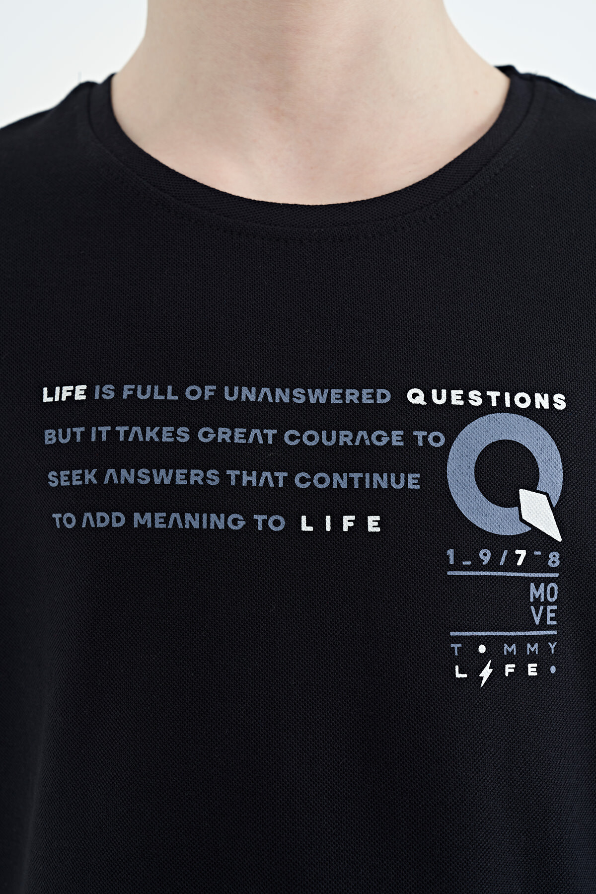 Lacivert Baskı Detaylı O Yaka Standart Kalıp Erkek Çocuk T-Shirt - 11145