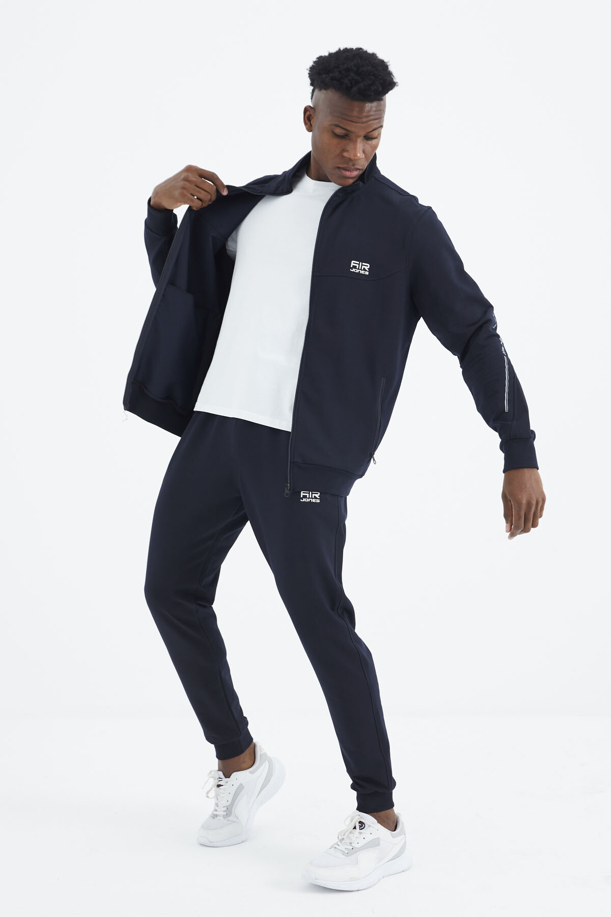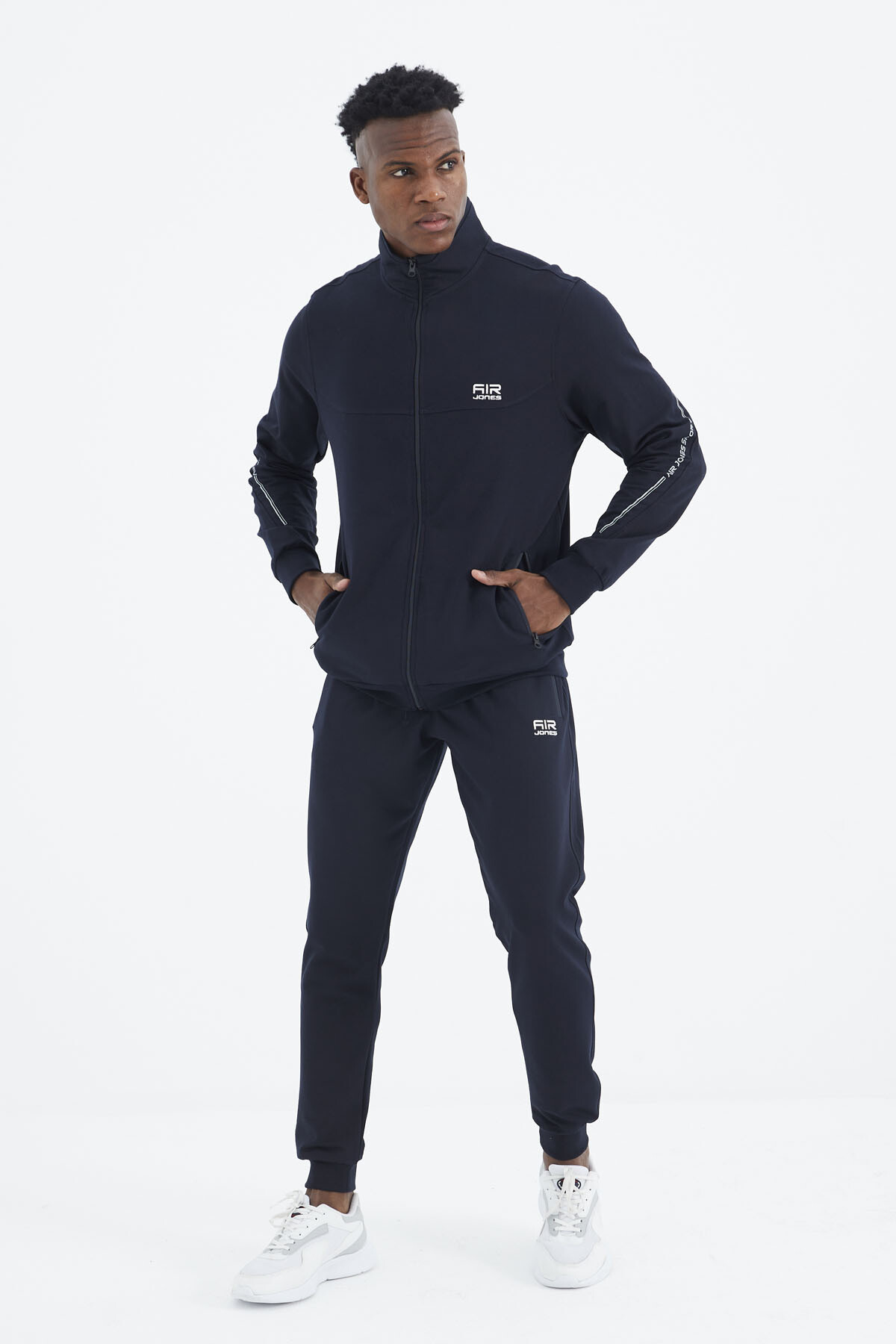 Air Jones, erkek giyiminde yaratıcı tasarımları ve konforlu giyim deneyimi ile öne çıkıyor. Bu seferki koleksiyonuyla, minimal yazı detaylarıyla zenginleşen dik yaka jogger erkek eşofman takımı, sadece rahatlığı değil aynı zamanda şıklığı da ön plana çıkarıyor. Eşofman takımının kollarında yer alan minimal yazı detayları, Air Jones'un özgün tasarım anlayışını yansıtıyor. Sadece detaylarda kullanılan bu yazılar, takıma sofistike bir hava katarken aynı zamanda sportif bir çizgiyi de beraberinde getiriyor. Minimalizm, bu eşofman takımının temelini oluşturuyor.