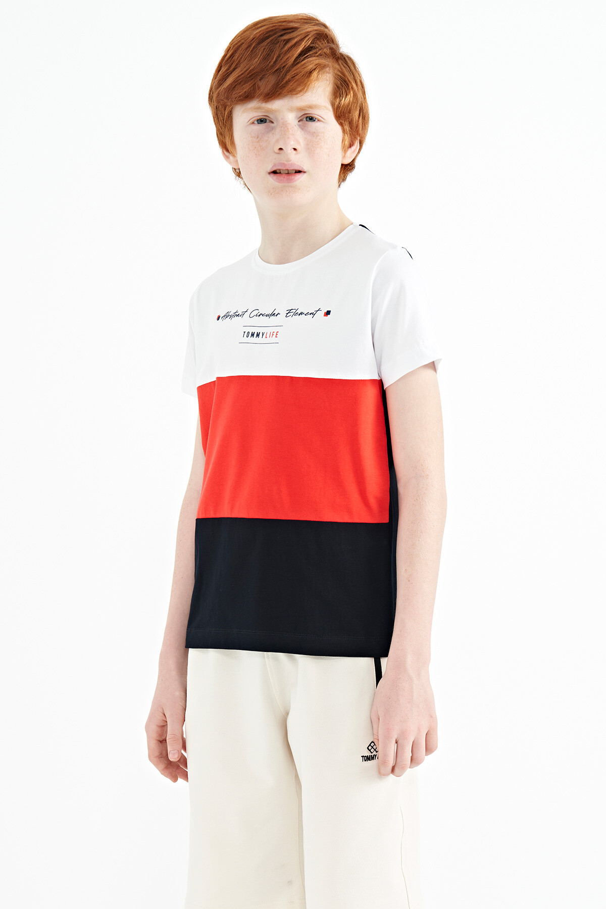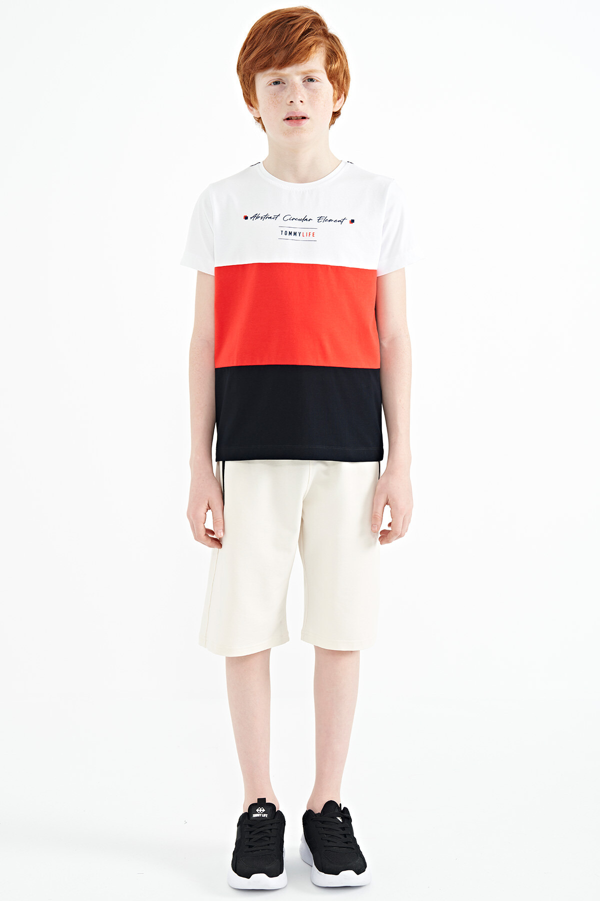 Beyaz Renk Bloklu O Yaka Baskı Detaylı Standart Kalıp Erkek Çocuk T-Shirt - 11135