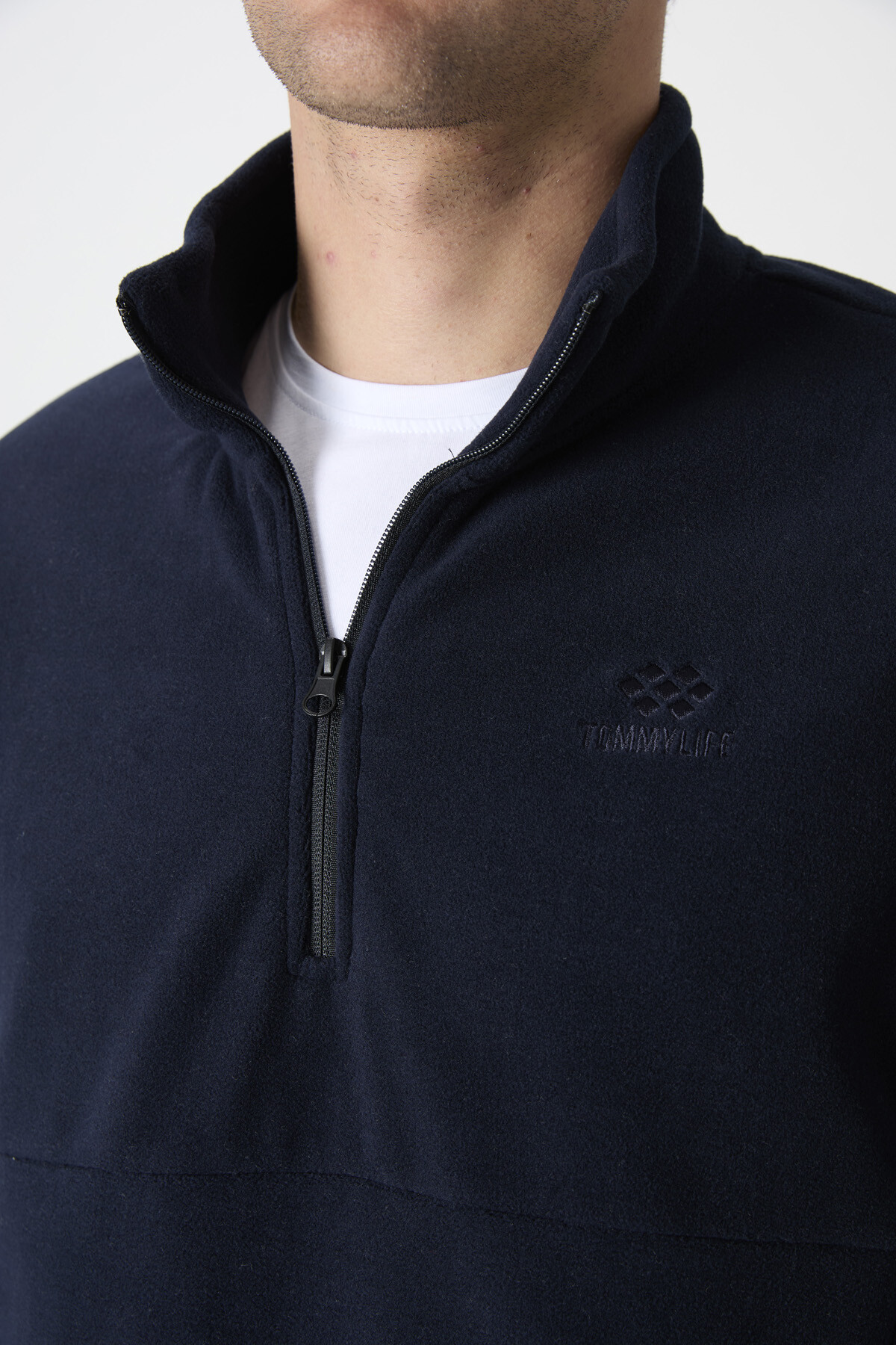 Lacivert Yarım Fermuarlı Sweatshirt Slim Fit Dik Yaka Erkek Polar - 87891