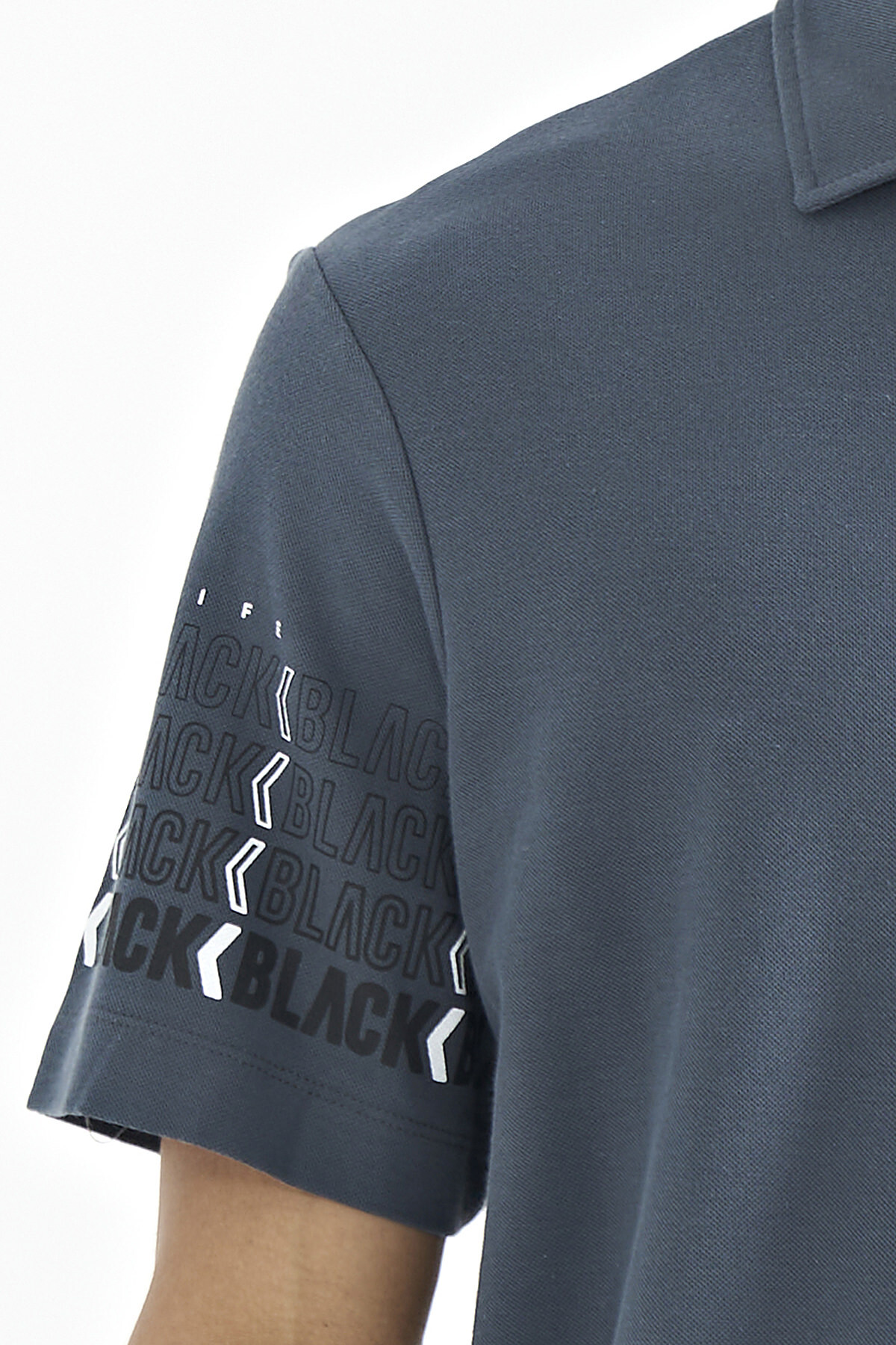 Orman Yeşili Kol Baskı Detaylı Polo Yaka Standart Form Erkek T-shirt - 88240