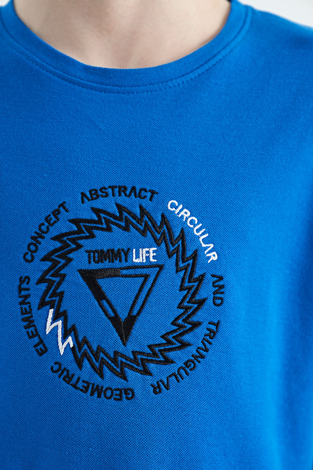 Saks Nakış İşleme Detaylı O Yaka Standart Kalıp Erkek Çocuk T-Shirt - 11115