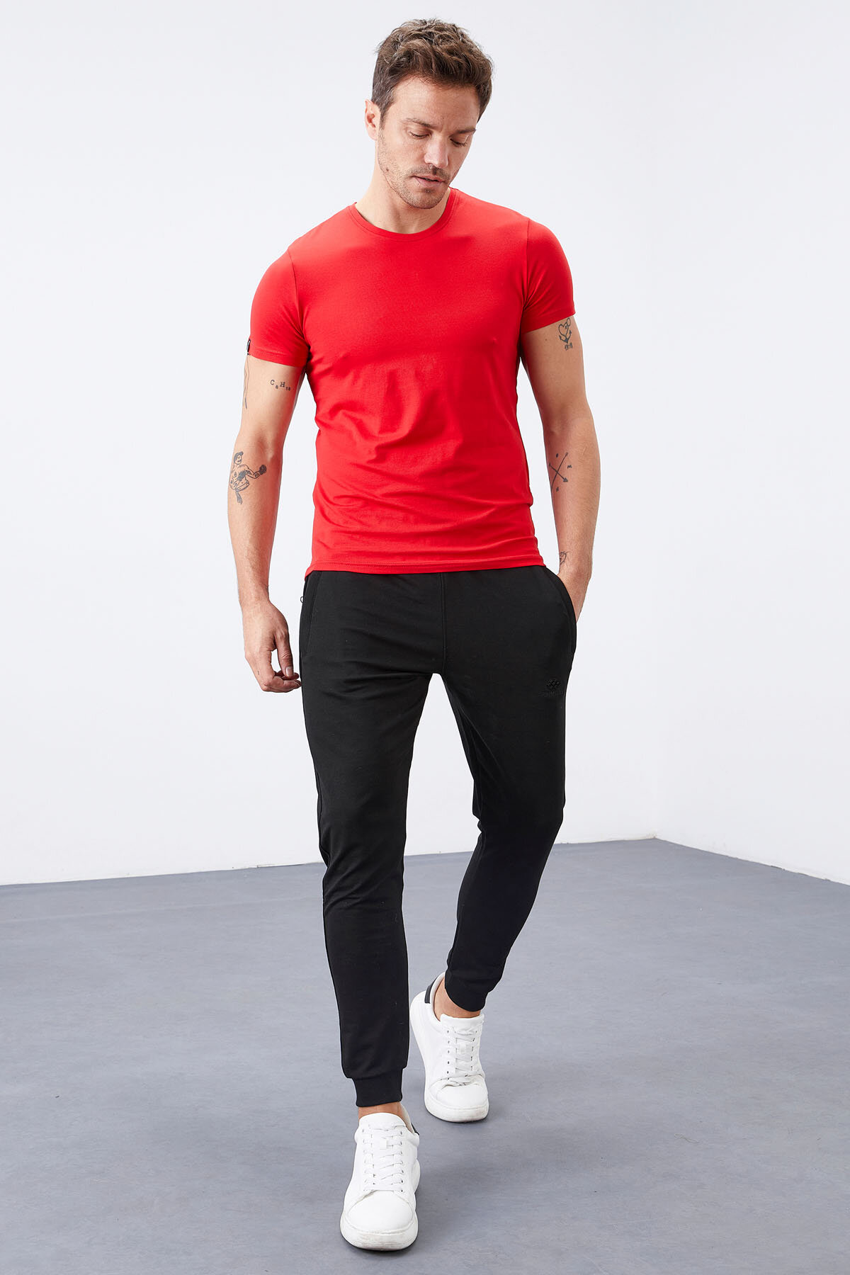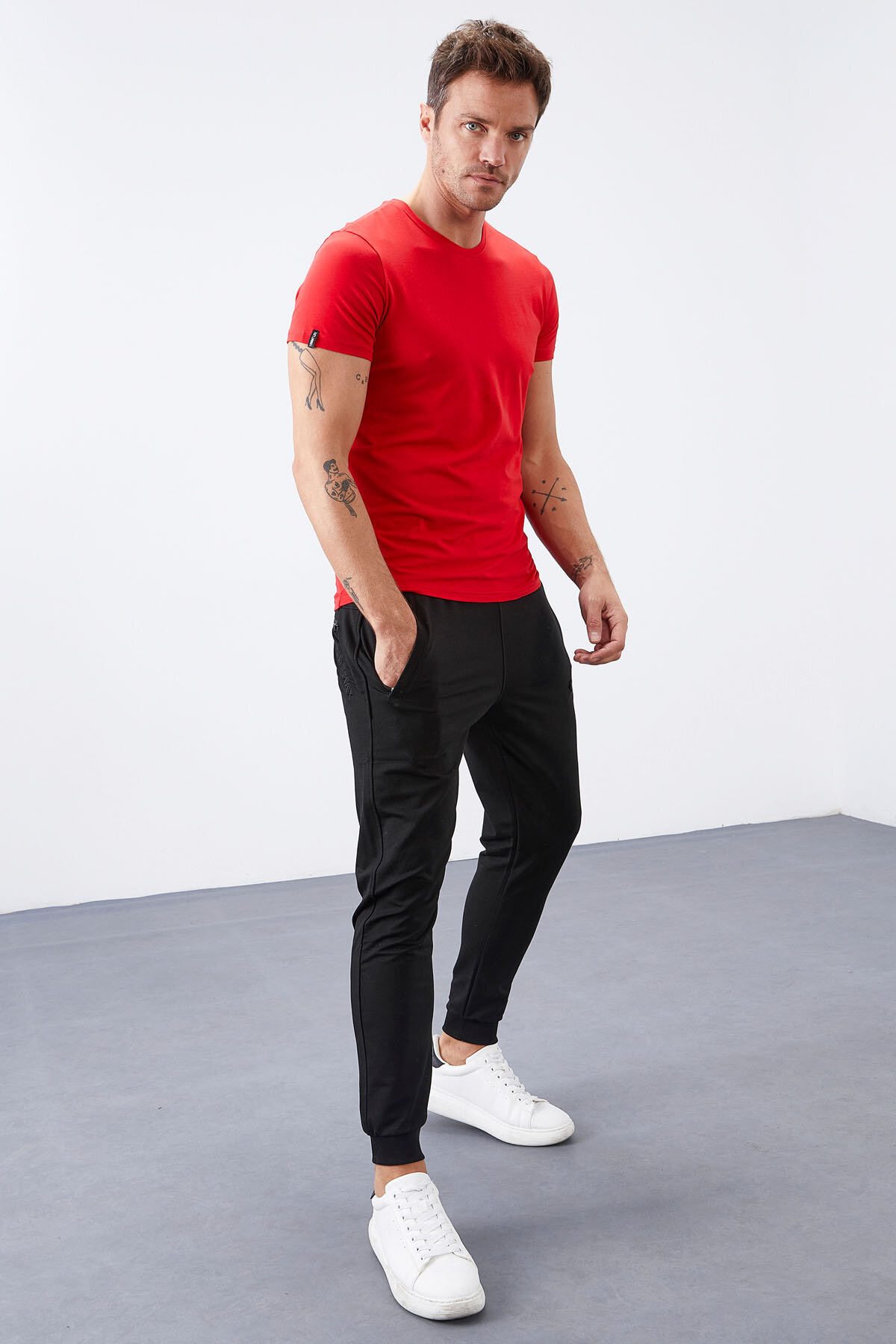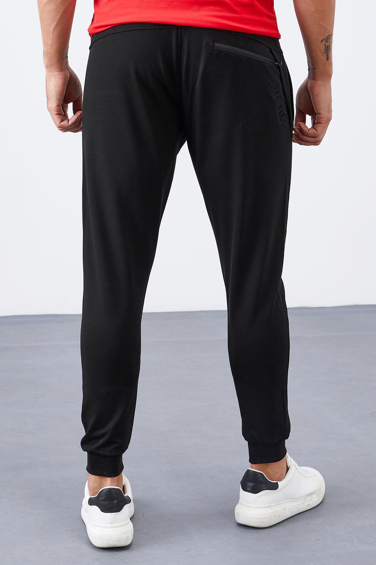 Siyah Fermuar Cepli Dar Kalıp Jogger Erkek Eşofman Alt - 84343