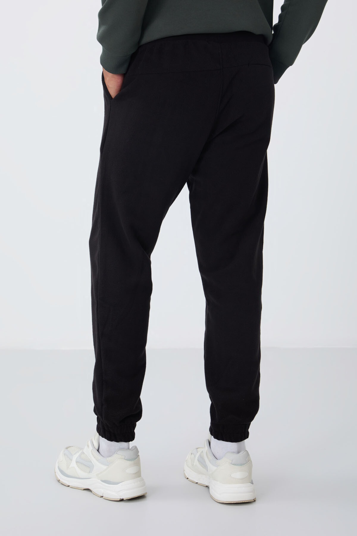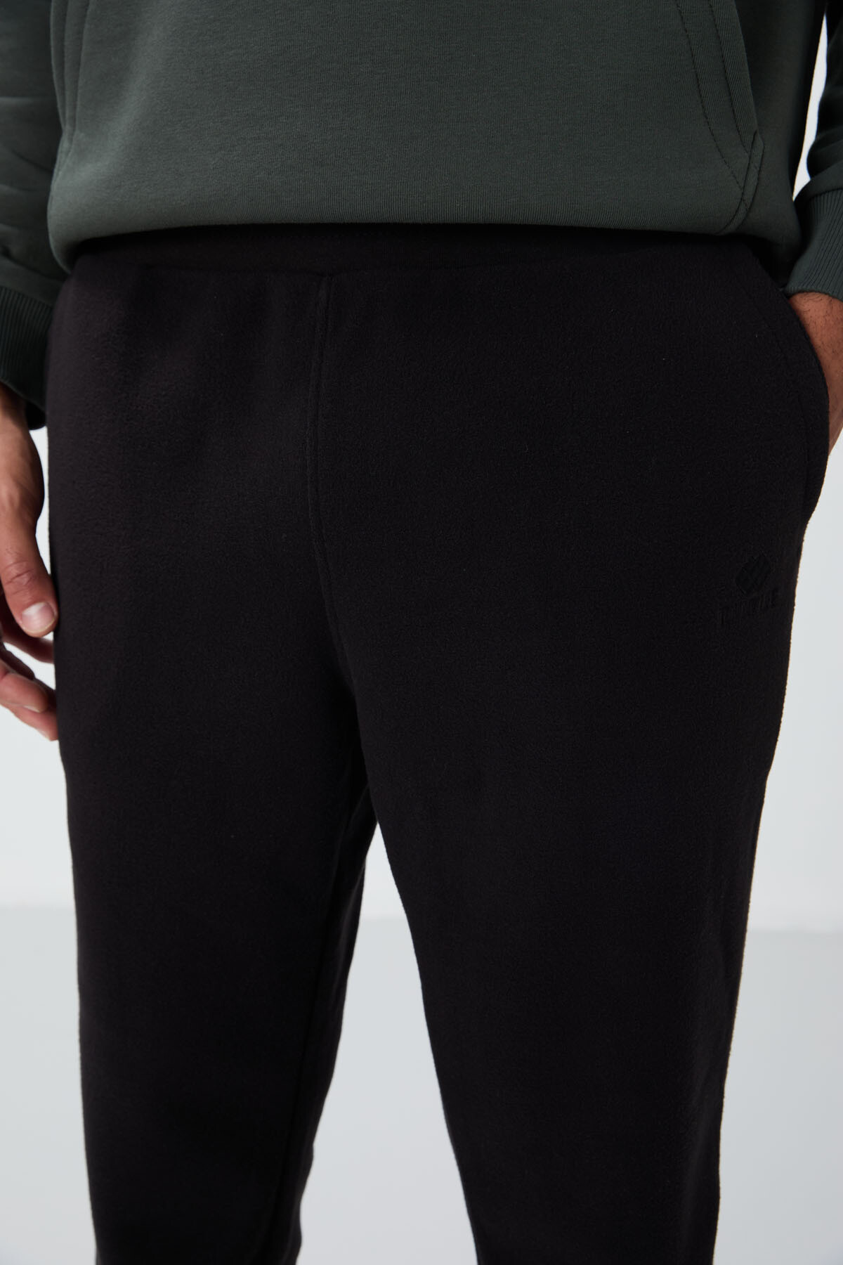 Siyah Gizli Fermuarlı Rahat Form Jogger Polar Erkek Eşofman Alt - 84866