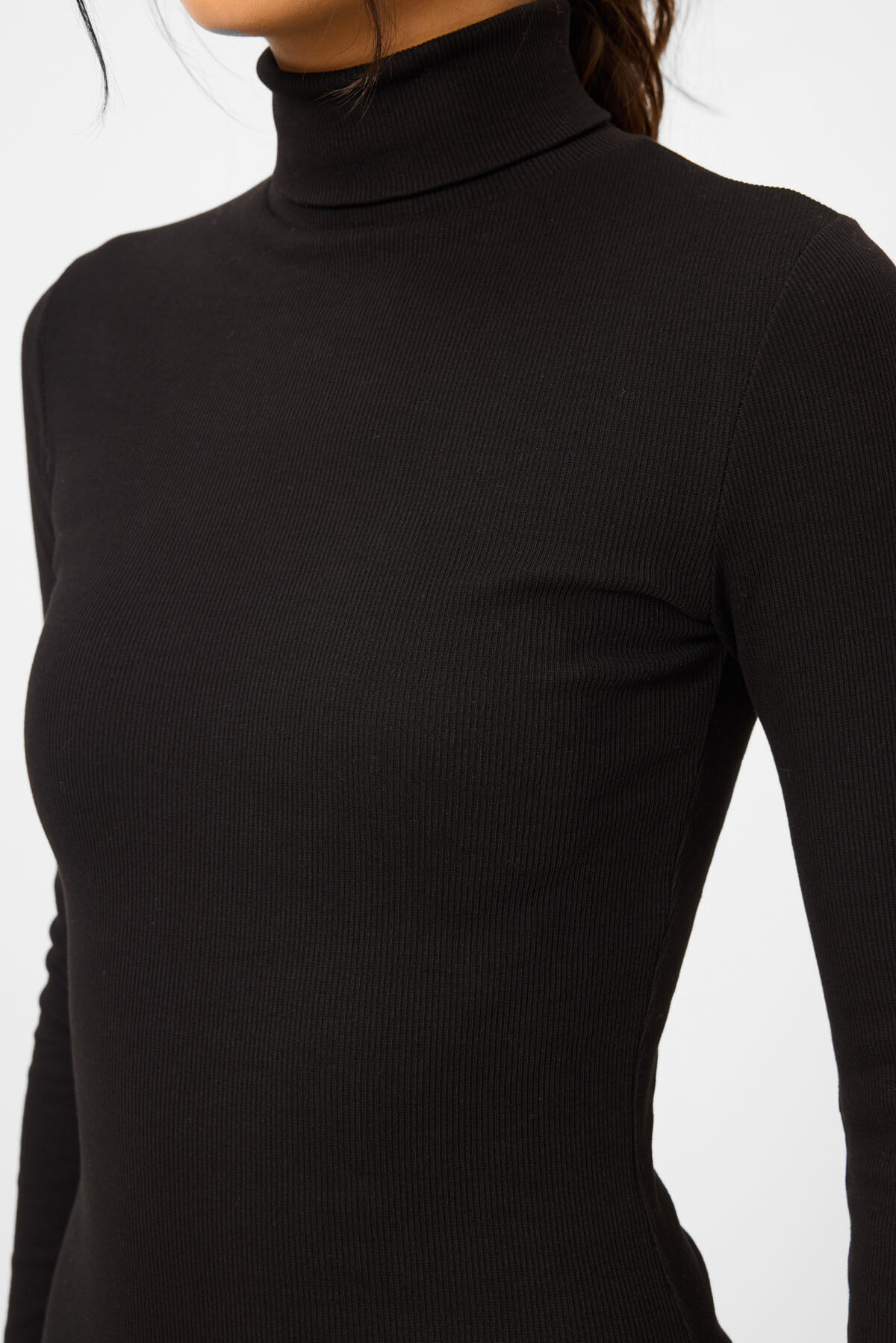 Siyah Kaşkorse Triko Dar Kalıp Balıkçı Yaka Kadın Elbise - 97117