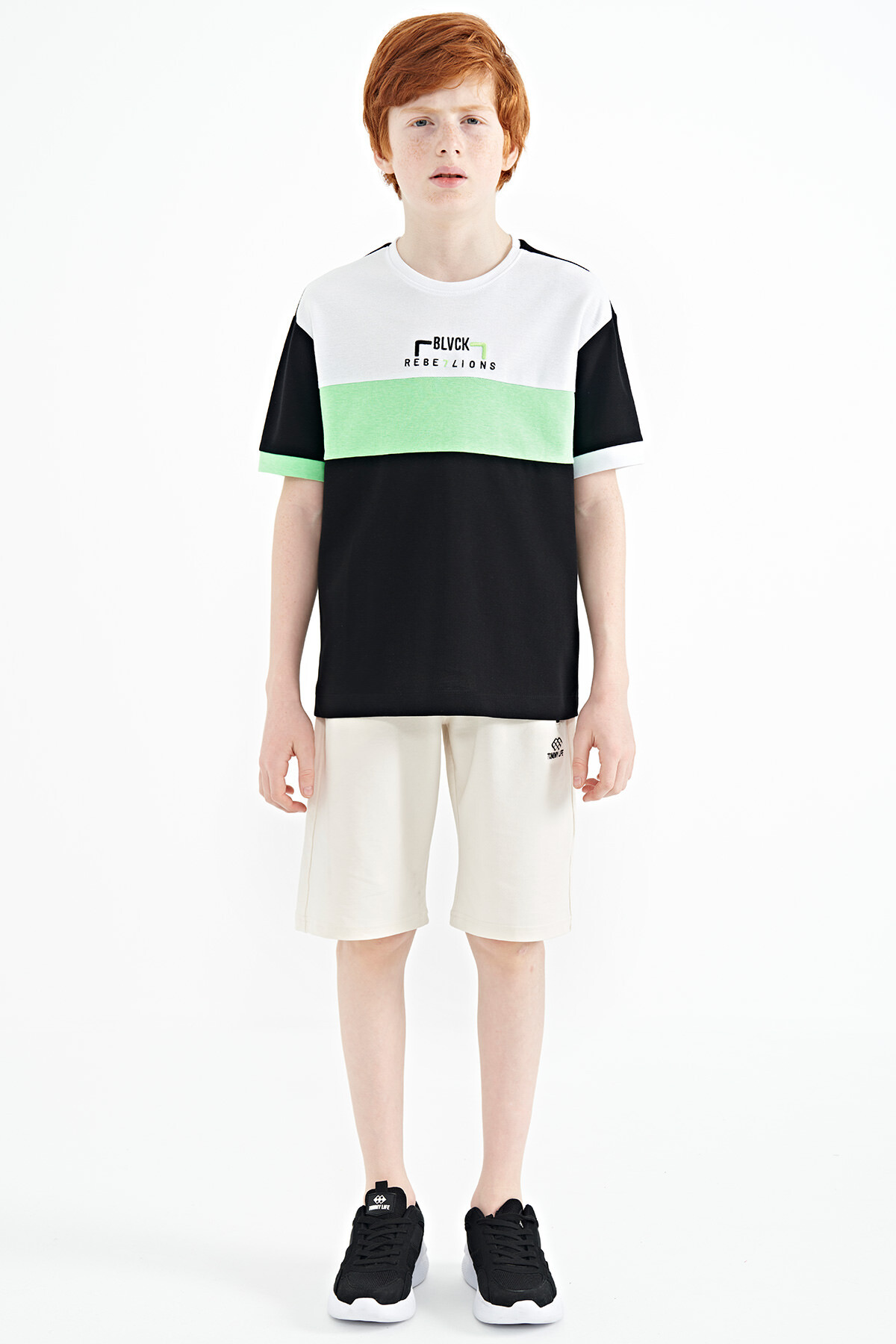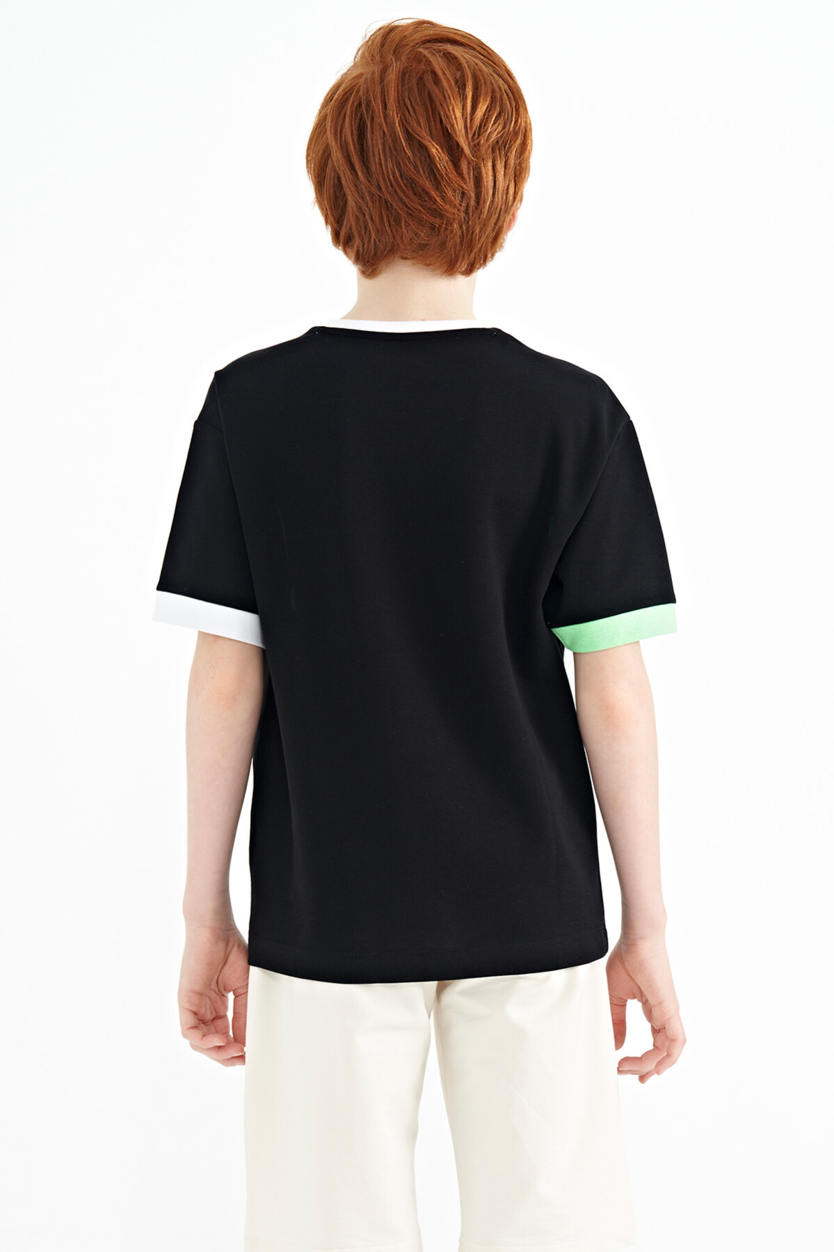 Siyah Renk Geçişli Nakışlı Oversize Erkek Çocuk T-Shirt - 11159