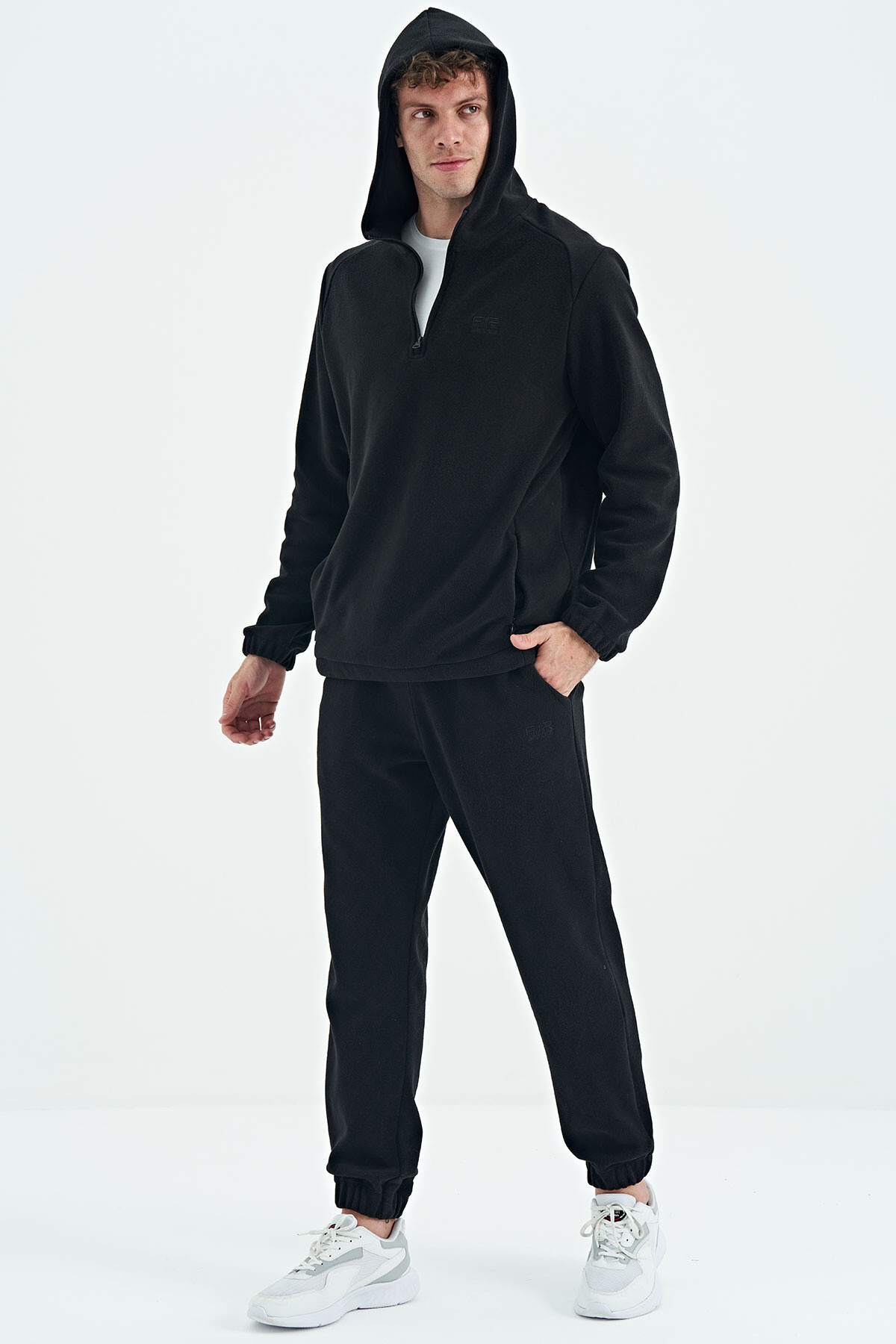 Hektor Siyah Kapüşonlu Polar Erkek Eşofman Takım - 85227