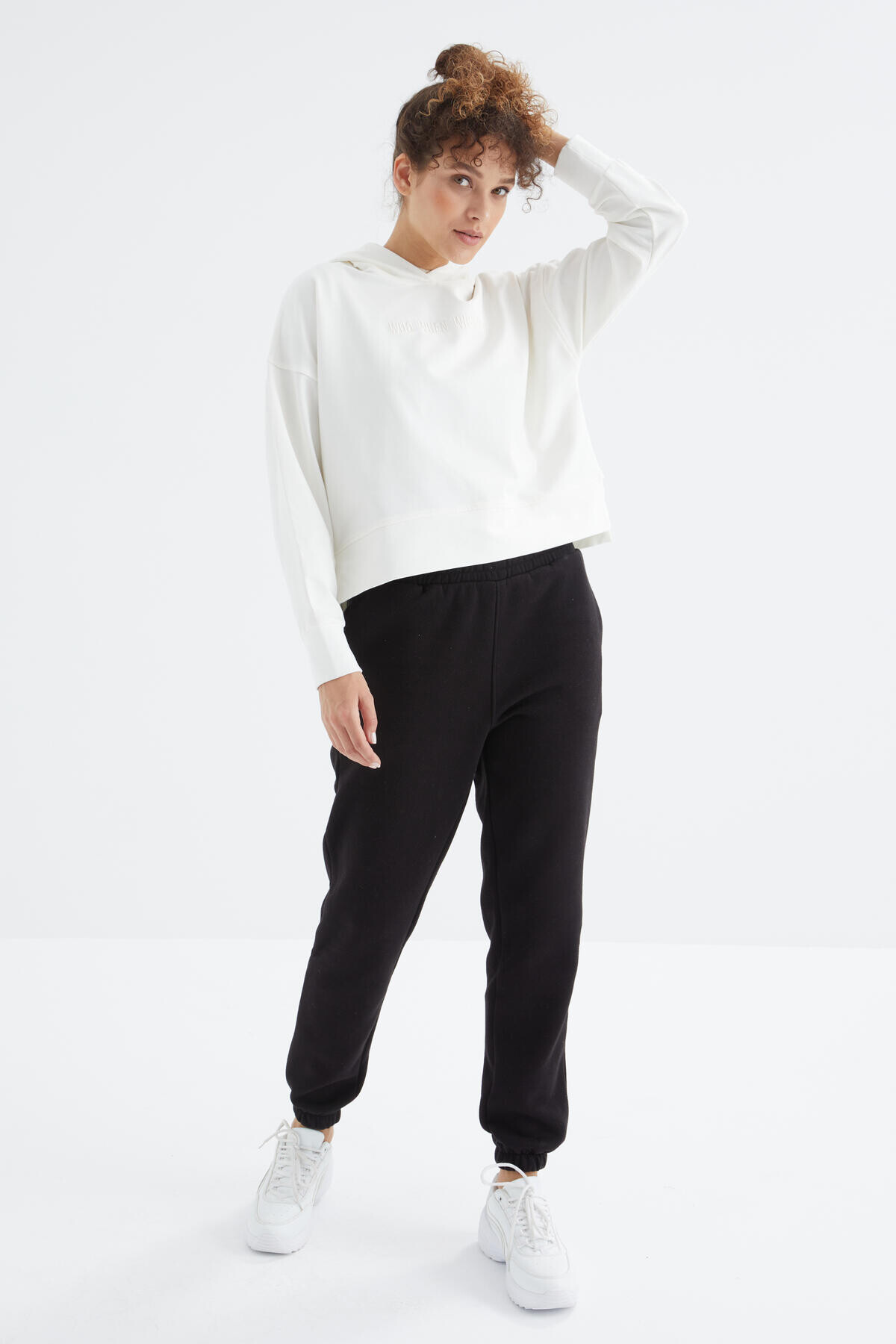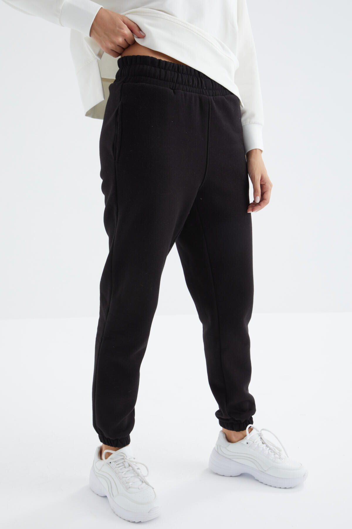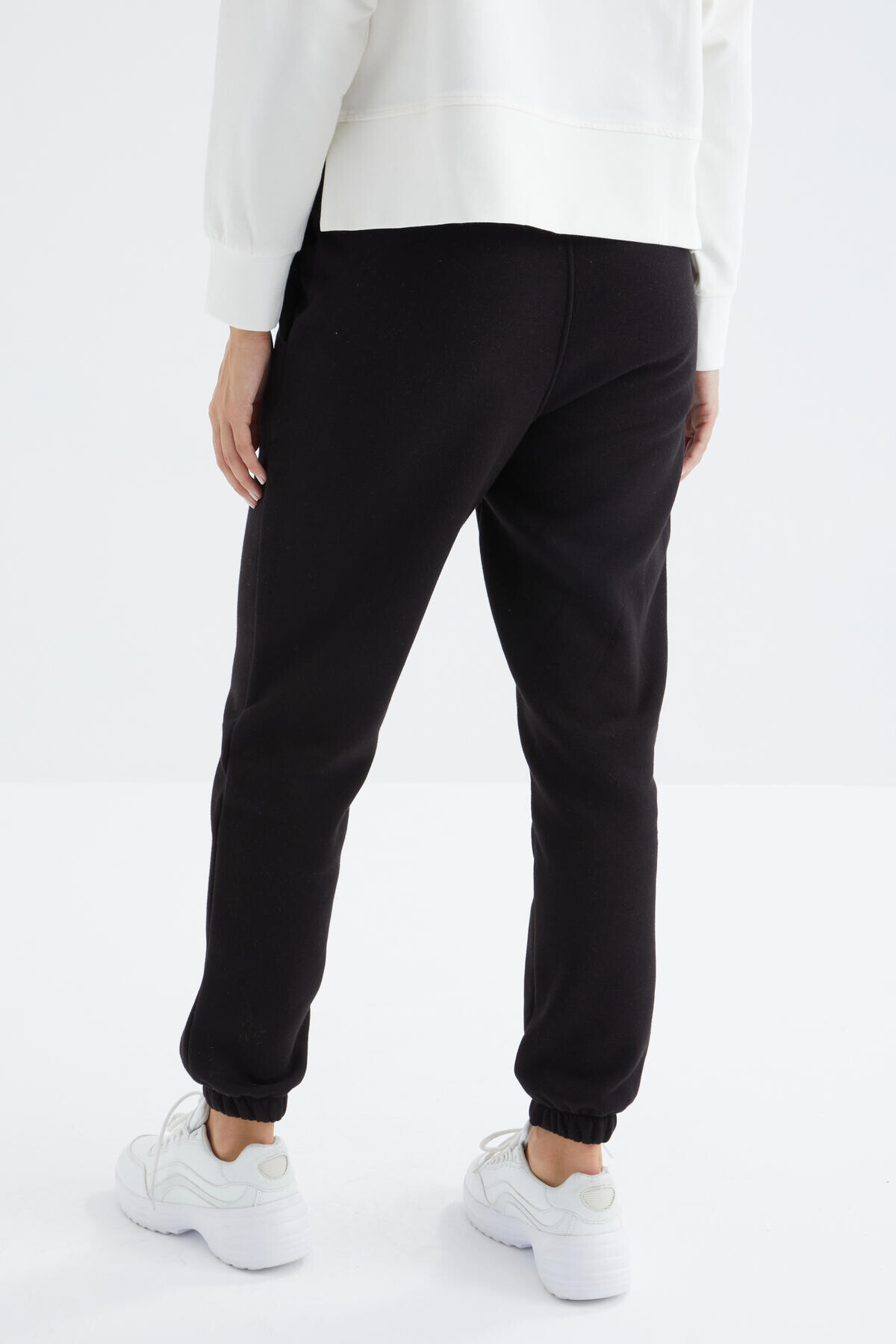 Siyah Yüksek Bel Şardonlu 3 İplik PamukluBasic Kadın Eşofman Alt - 94624